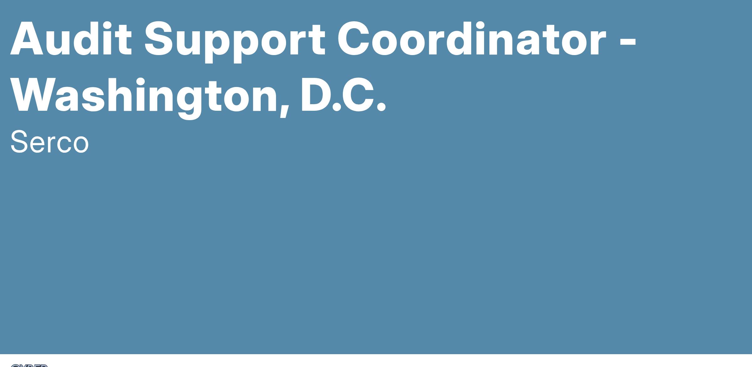 Serco is seeking an Audit Support Coordinator for the Submarine Safety and Quality Assurance Division (SEA 07Q) at Naval Sea Systems Command (NAVSEA), located at the Washington Navy Yard in Washington, D.C.