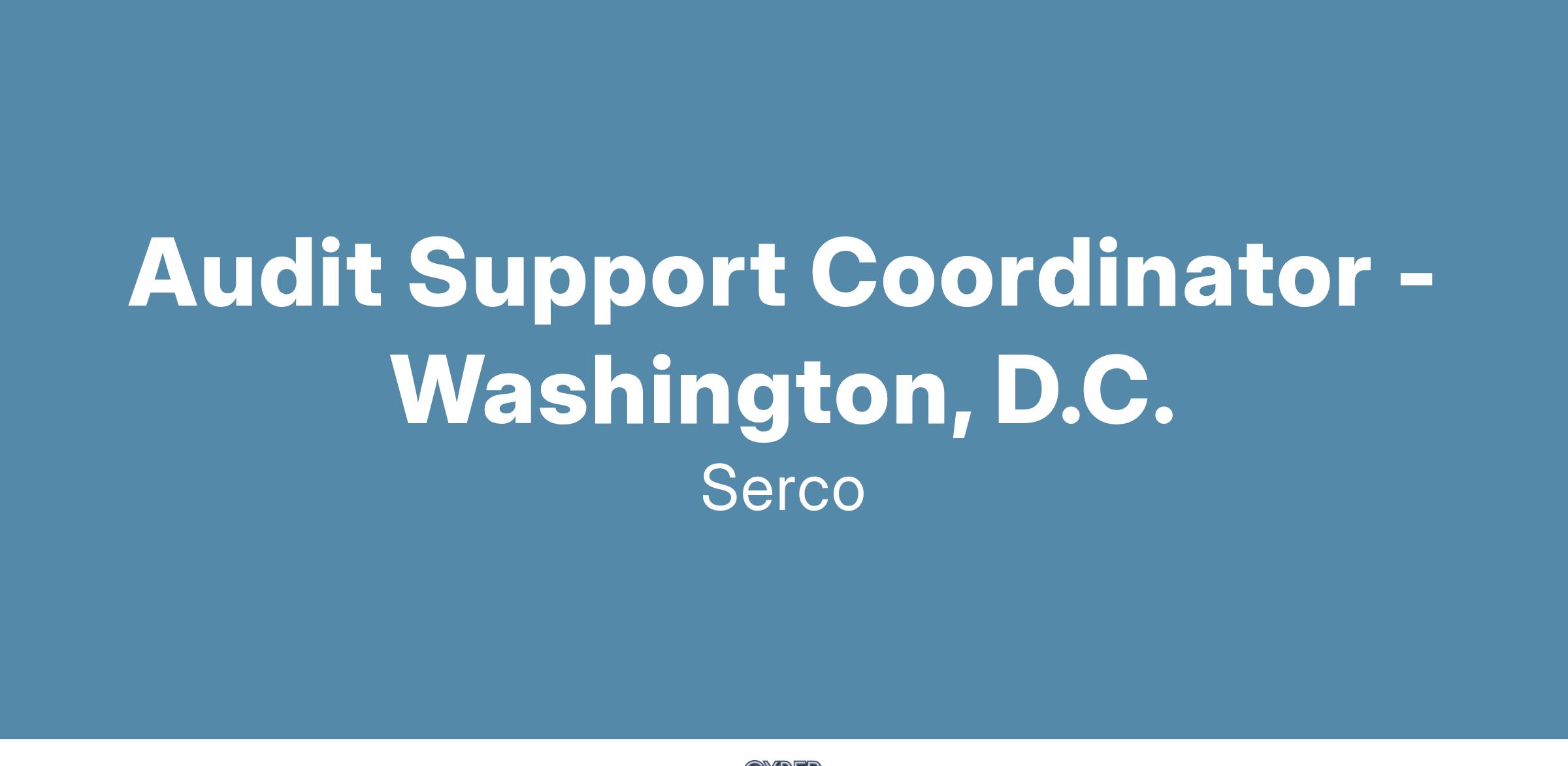 Serco is seeking an Audit Support Coordinator for the Submarine Safety and Quality Assurance Division (SEA 07Q) at Naval Sea Systems Command (NAVSEA), located at the Washington Navy Yard in Washington, D.C.