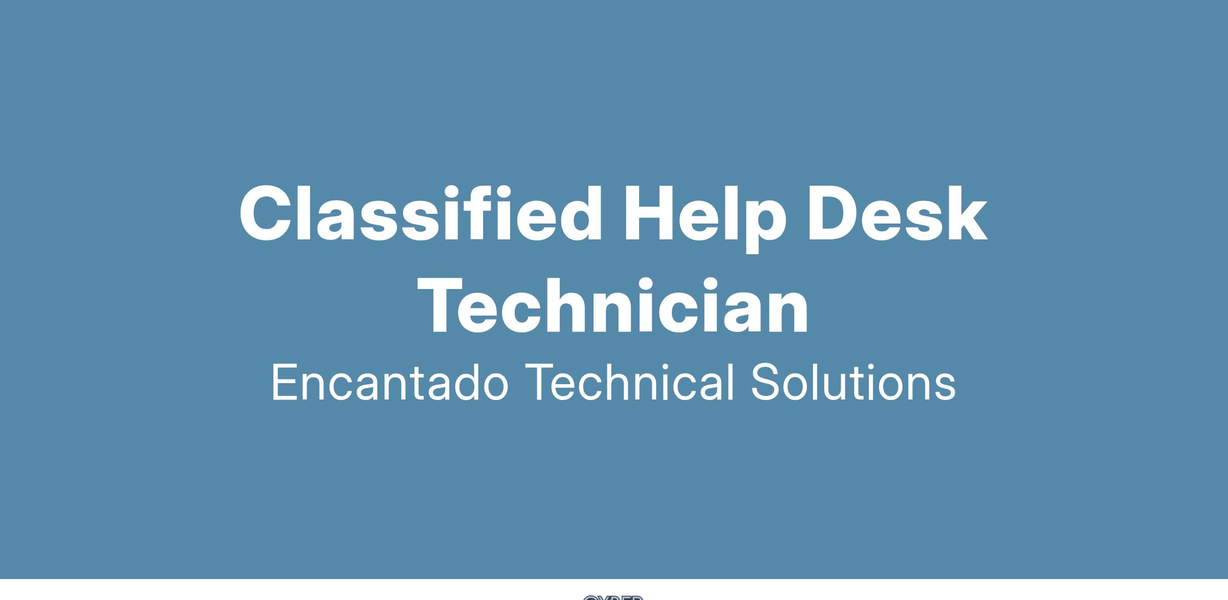 Encantado Technical Solutions is seeking a Classified Support Technician to support the IT program at a major national laboratory.
