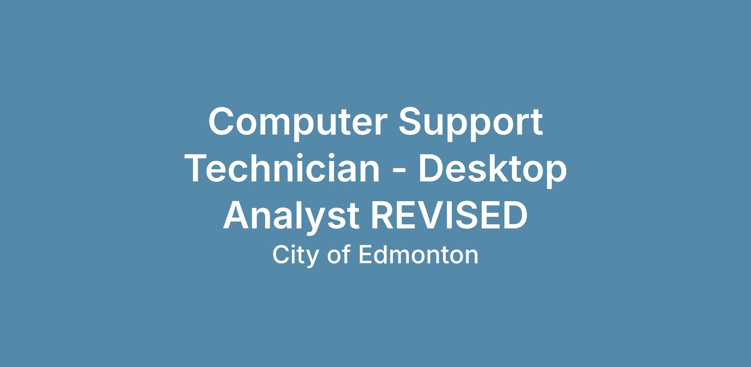 The Edmonton Police Service (EPS) provides essential services to our community. The EPS requires two (2) talented and skilled Full-Time Desktop Analysts to join our team to ensure the reliability and functionality of our end point computer systems in the public safety environment.