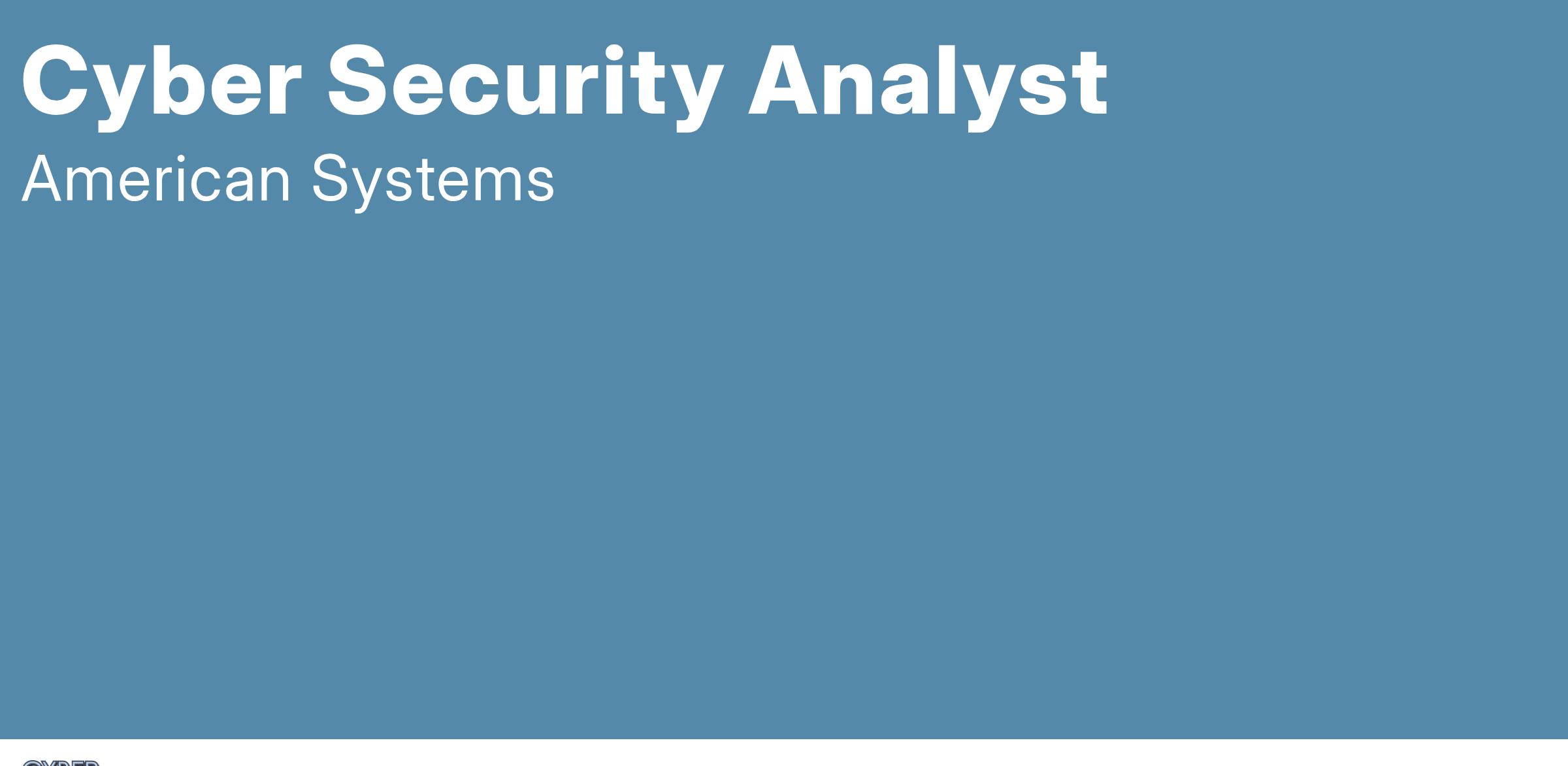 AMERICAN SYSTEMS is seeking qualified Cybersecurity Analyst applicants to provide technical services to Air Force Operational Test and Evaluation Center (AFOTEC) Detachment 2 (Det 2) through analytical, engineering, and cyber operations subject matter expertise for Det 2’s Joint Cyber Warfighting Architecture (JCWA) programs. The specific programs supported are the Unified Platform (UP) and Joint Cyber Command and Control (JCC2) offensive and defensive cyber operations.