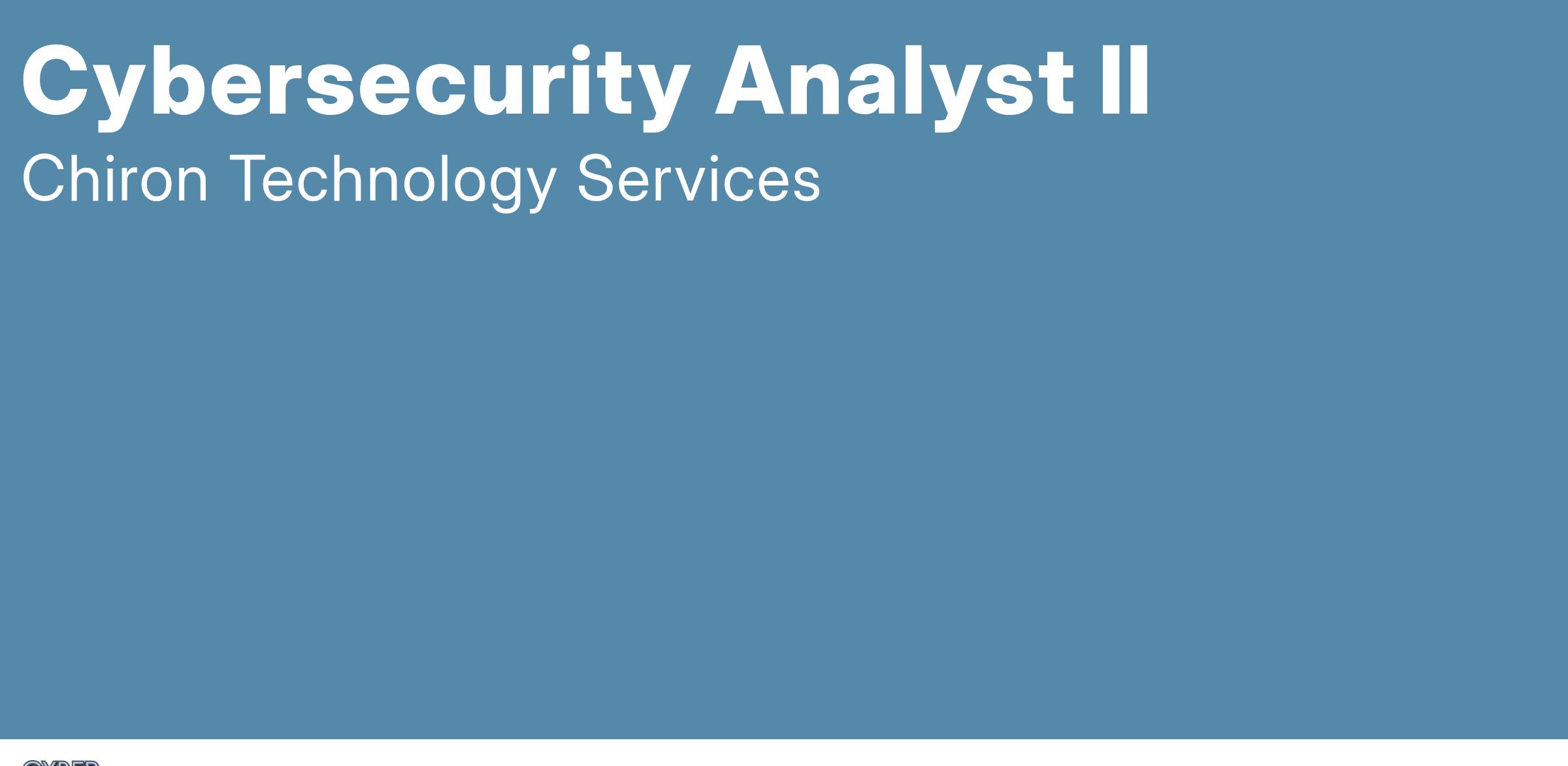 Chiron Technology Services, Inc. currently has a Cybersecurity Analyst II career opportunity in the Annapolis Junction, MD area.