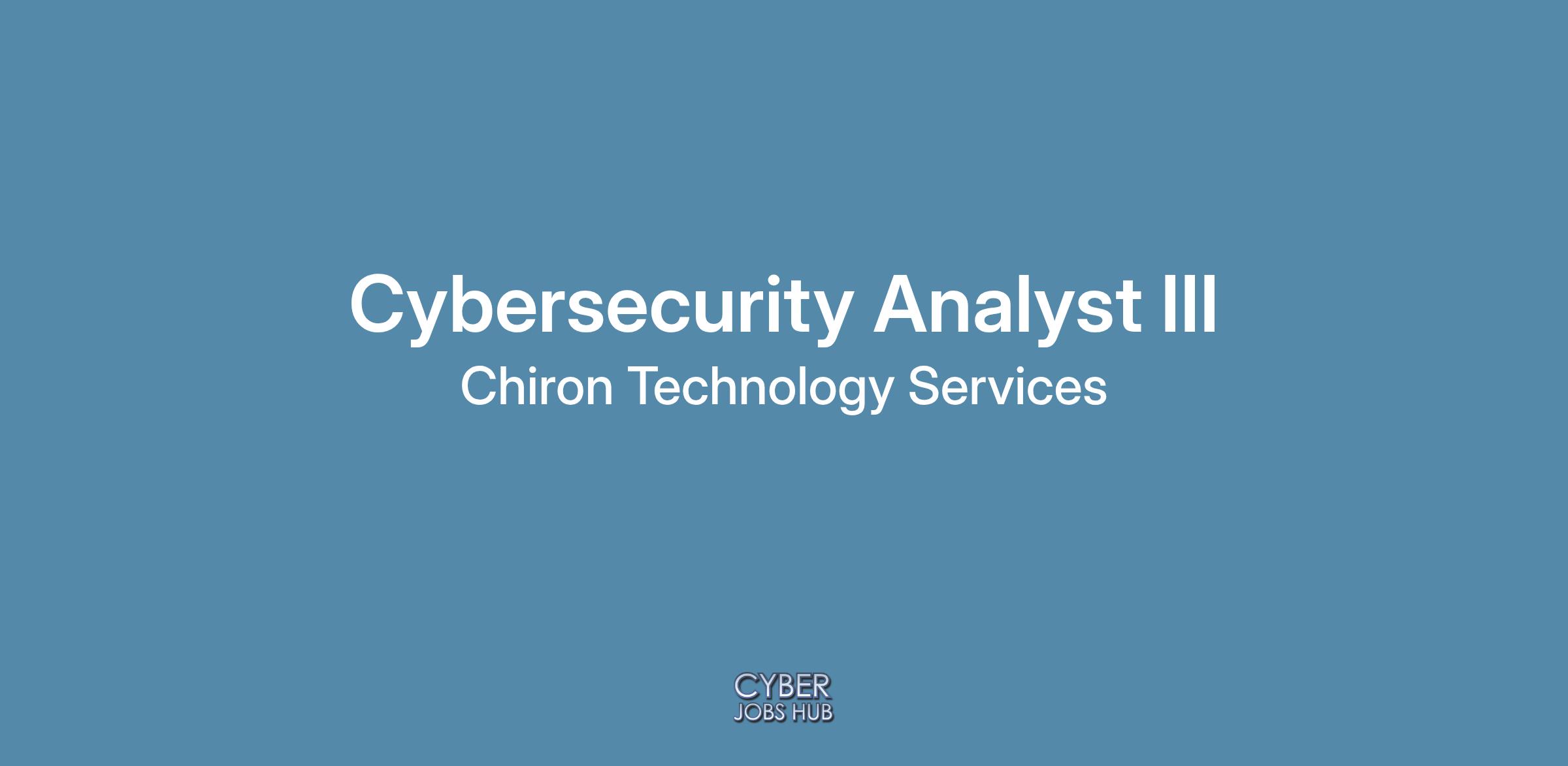 Chiron Technology Services, Inc. currently has a Cybersecurity Analyst III career opportunity in the Annapolis Junction, MD area.