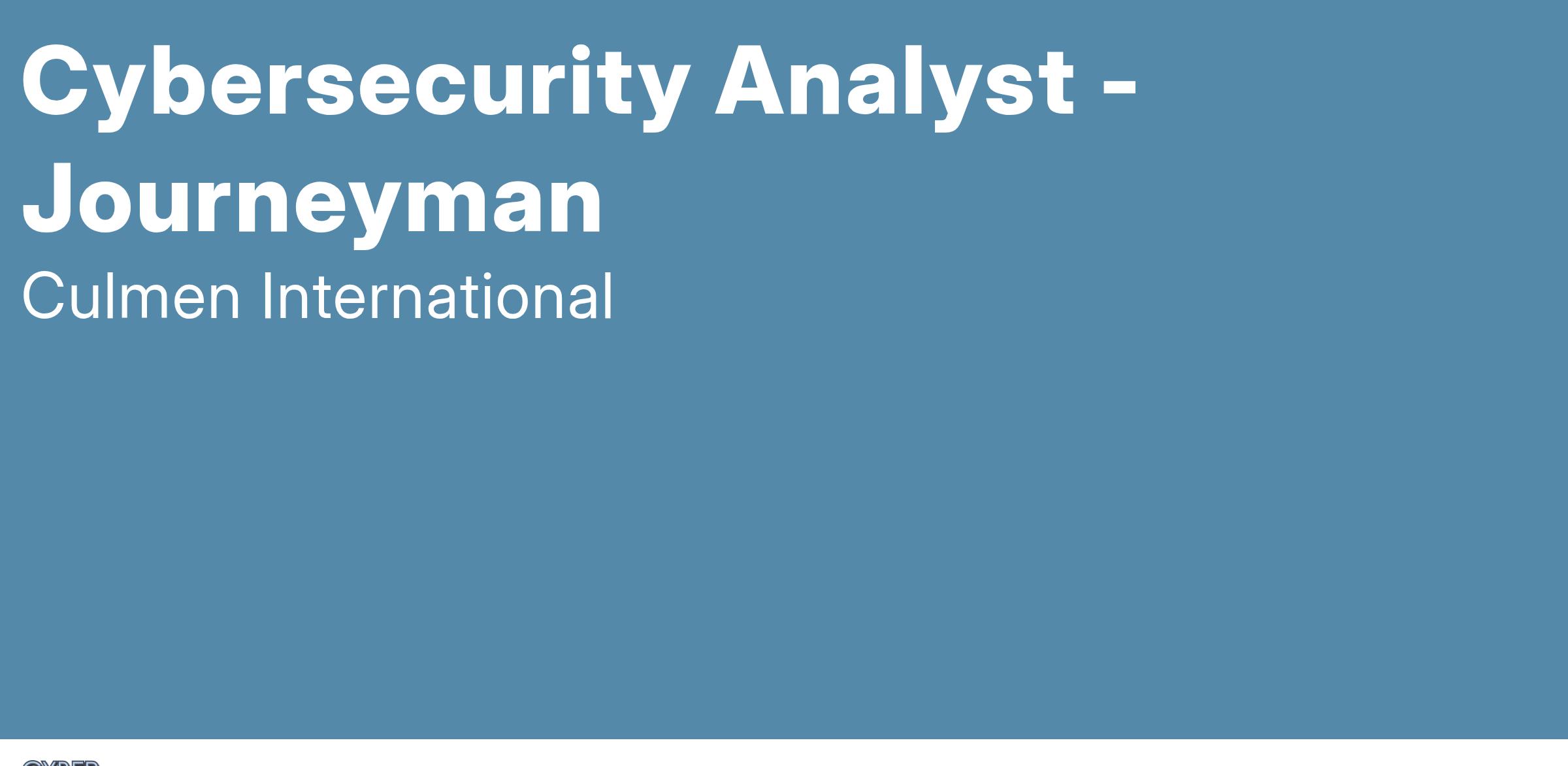 Culmen International is hiring an Cybersecurity Analyst (Journeyman) to provide support for the Research Directorate at the Naval Air Warfare Center Aircraft Division and will be onsite in Lakehurst, NJ.