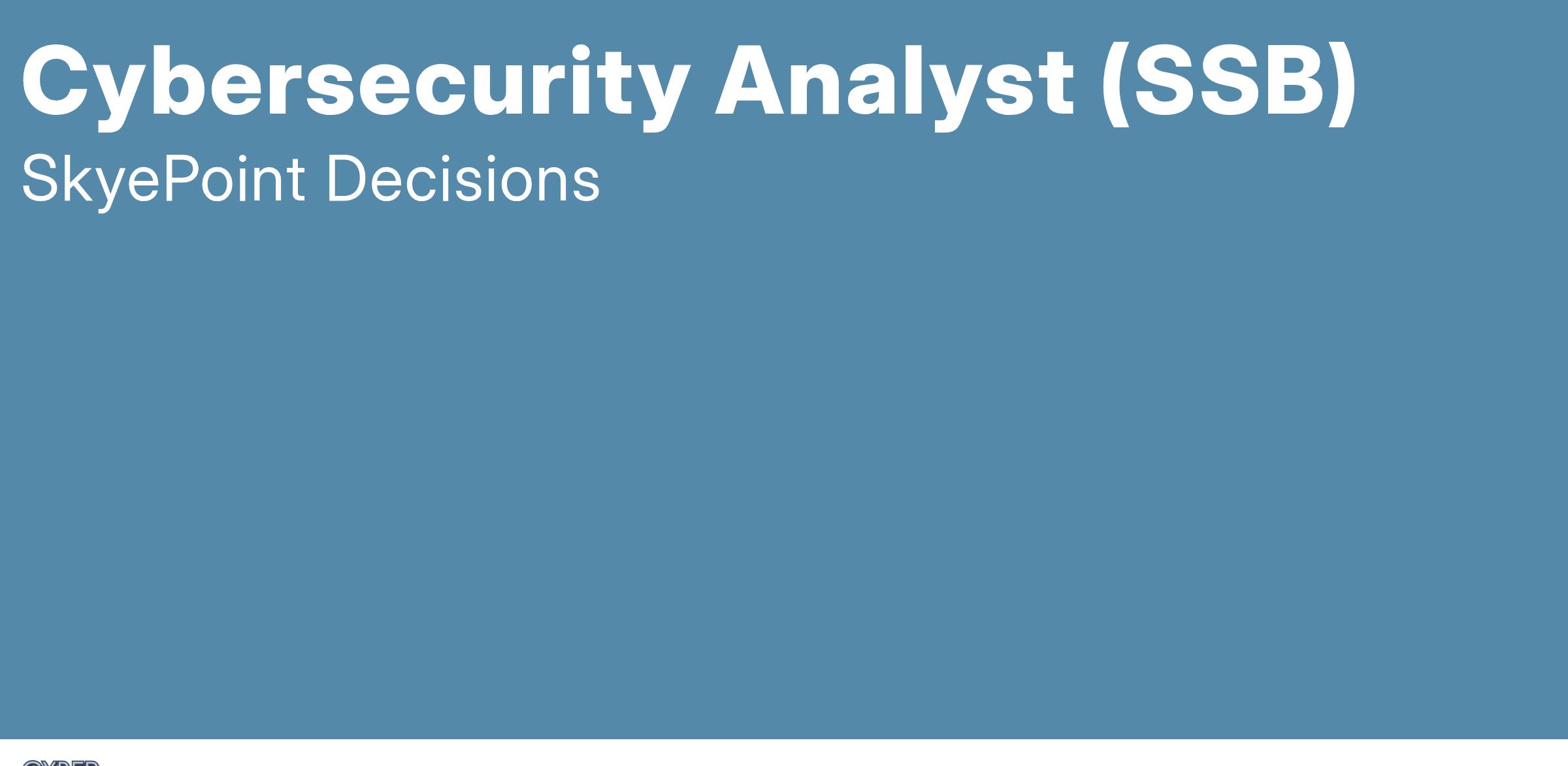 Skyepoint Decisions is seeking a Cybersecurity Analyst (SSB) to support the Diplomatic Security Cyber Mission (DSCM) program providing leading cyber and technology security experience to enable innovative, effective, and secure business processes.
