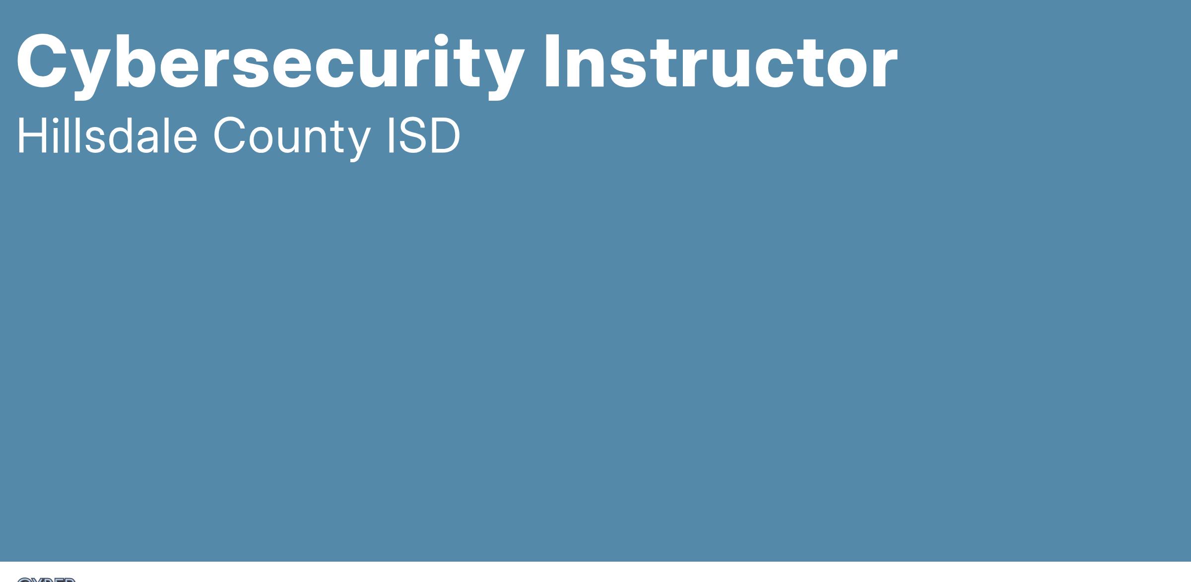 Plan and provide instruction to students enrolled in the career and technical education program, Systems Administration/Administrator/Cybersecurity, through the Hillsdale Area Career Center in compliance with MDE and the Office of Career and Technical Education.
