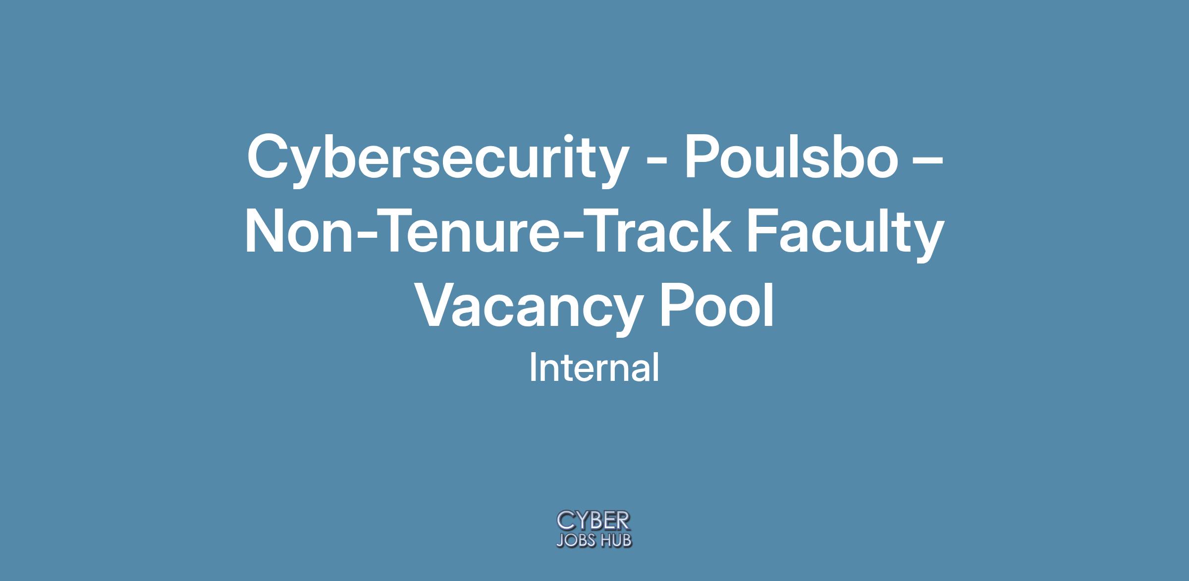 Position Title | Cybersecurity - Poulsbo – Non-Tenure-Track Faculty Vacancy Pool |