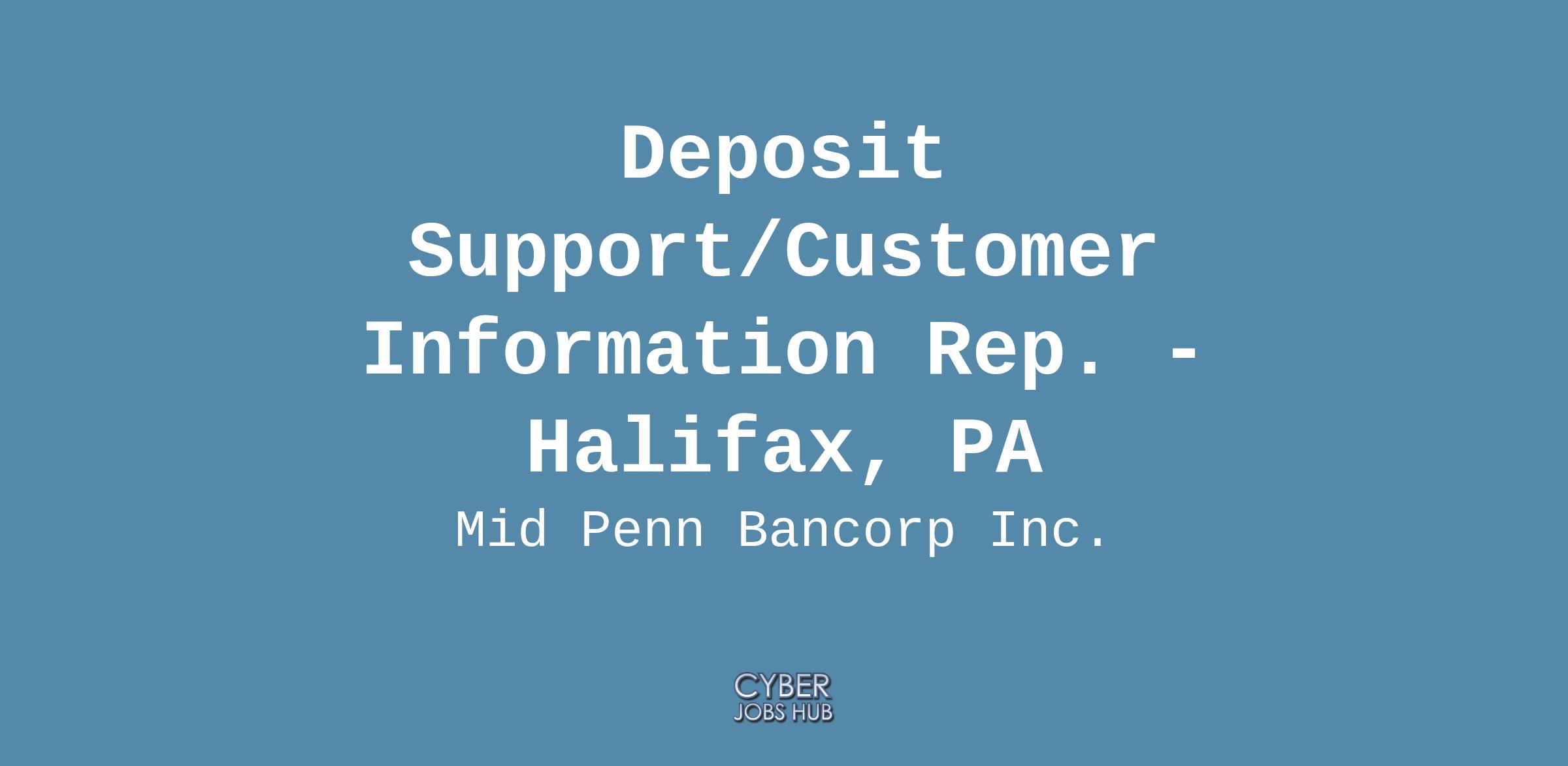 A great banking experience starts with a great team! Mid Penn Bank is actively seeking a Customer Information Rep. to join our Deposit Support team in Halifax, PA.