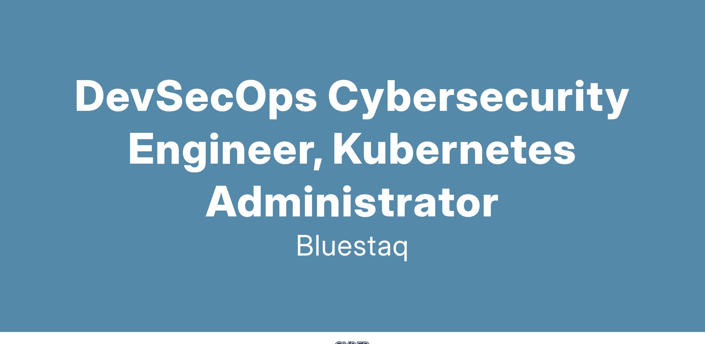 DevSecOps Cybersecurity Engineer, Kubernetes Administrator