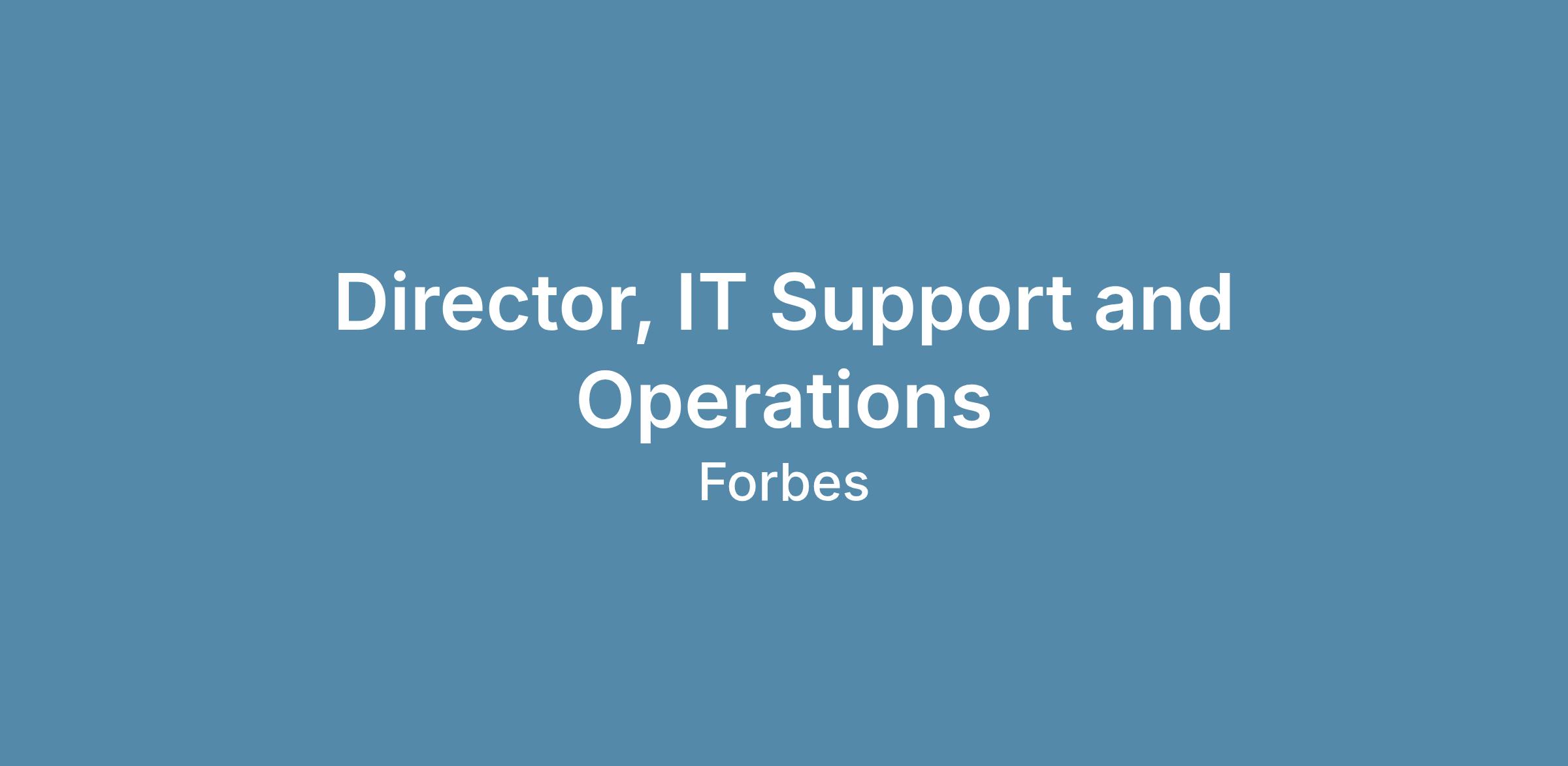 Forbes is seeking a Director, IT Support and Operations, responsible for defining and executing the vision for Forbes’ internal IT operations — ensuring reliability, security, and efficiency across all corporate systems, end-user support, and infrastructure services. This is a hands-on, strategic leadership role reporting to the Vice President of Technology. This leader will oversee both the Helpdesk team (on-site and offshore) and the Infrastructure team, delivering world-class support experiences and maintaining secure, scalable systems that enable productivity across the organization. The ideal candidate is both a strategic modernizer and a technical contributor, capable of introducing automation, AI-driven processes, and next-generation tools to enhance IT service delivery.