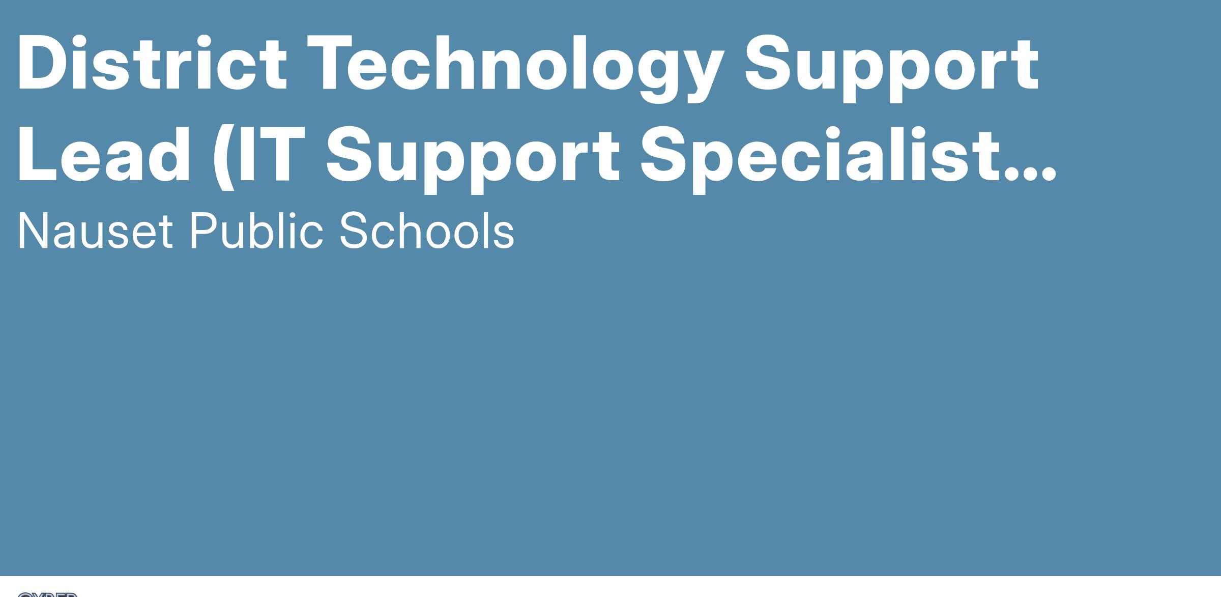 District Technology Support Lead (IT Support Specialist Level 3) |