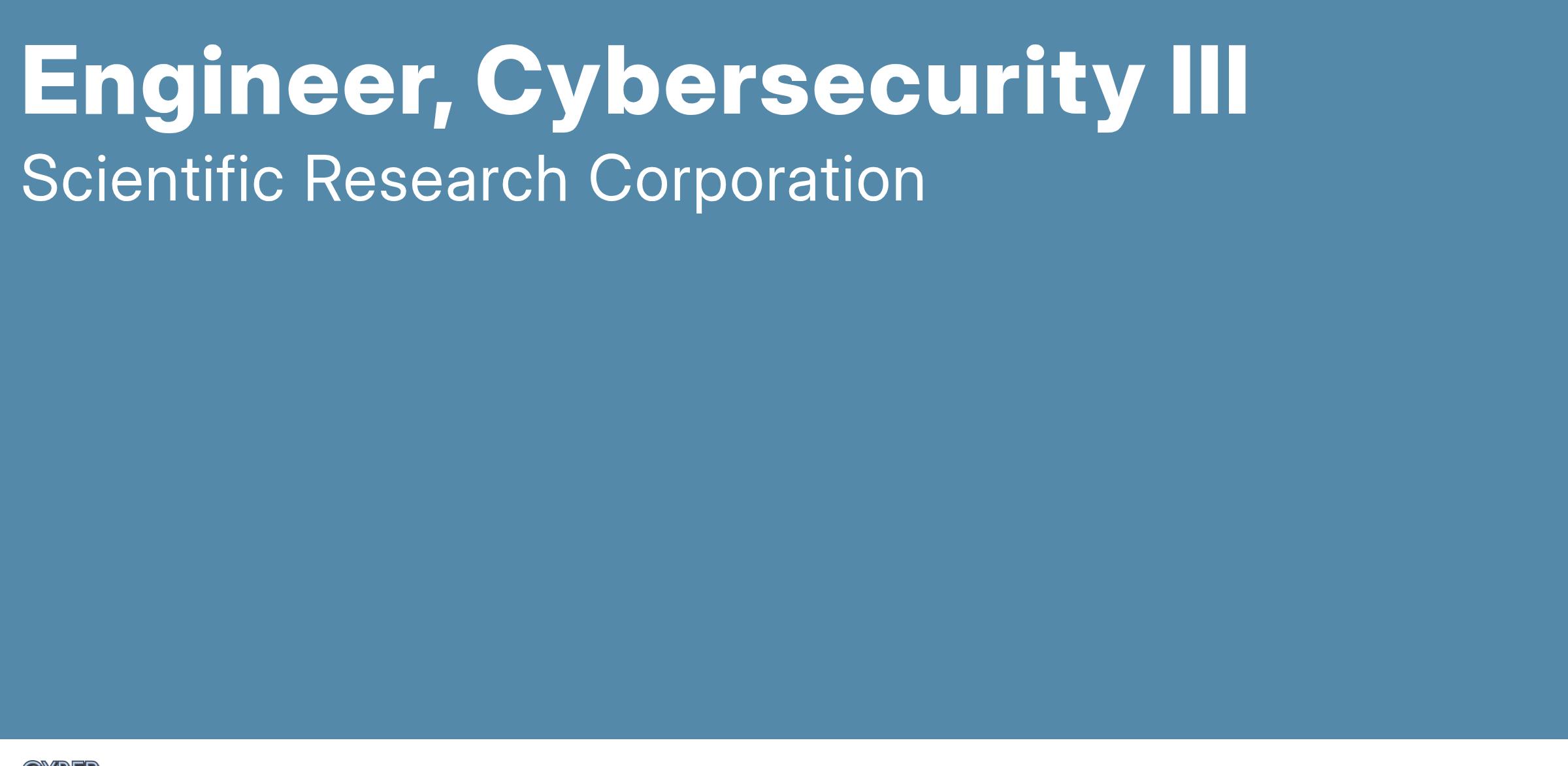 Scientific Research Corporation is an equal opportunity employer that does not discriminate in employment.