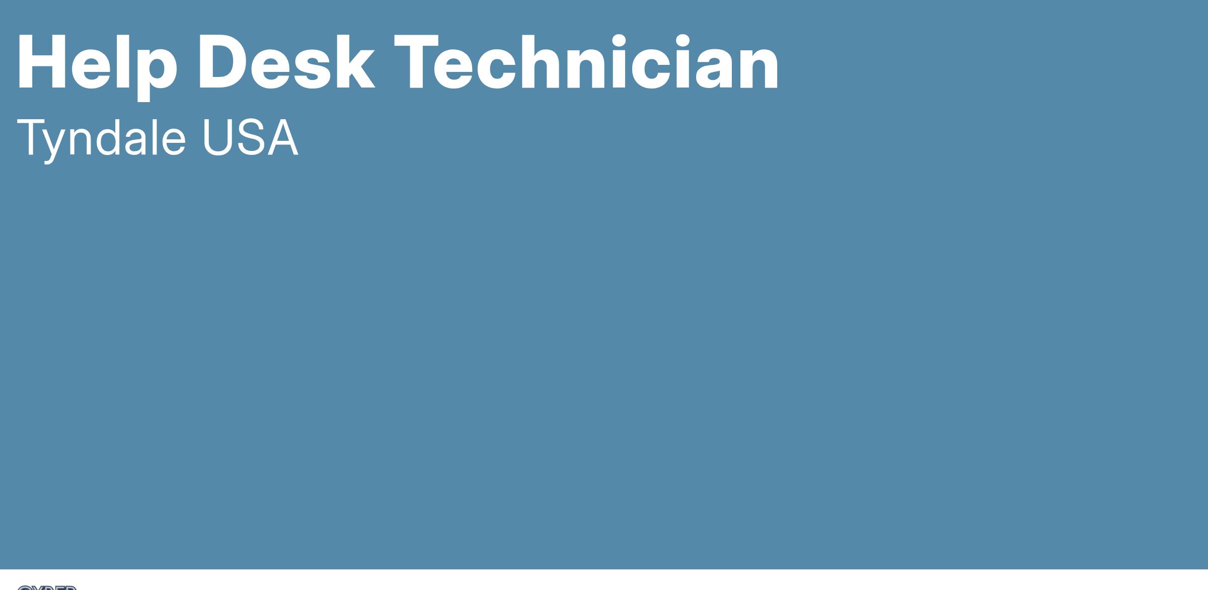 The Tyndale Company, an 8x Top Workplace winner in PA and certified woman-owned business, is seeking a Help Desk Technician to support our growing team. In this role, you’ll ensure all Tyndale employees have fully functioning equipment and software—from computers and phones to printers and mobile devices—while providing exceptional day-to-day IT support.
