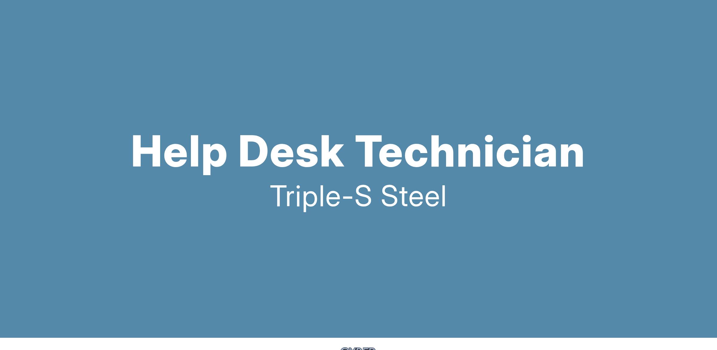 Triple-S Steel Supply is seeking an entry-to-mid-level Help Desk Technician who will report primarily to the Manager of Network Systems.