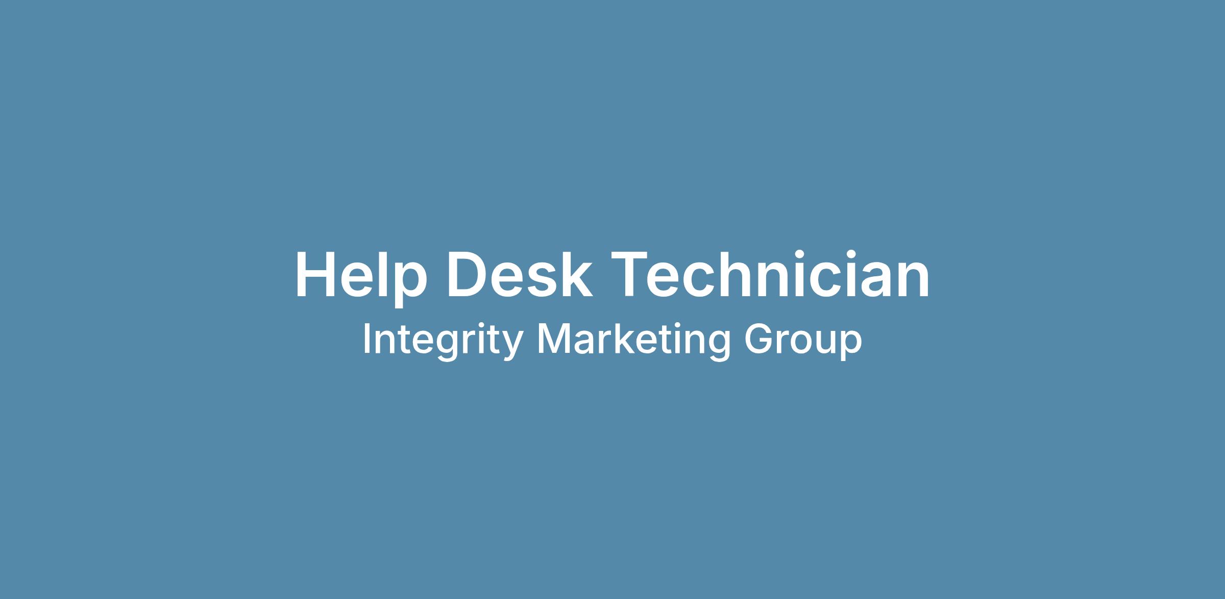 As a Help Desk Technician you will serve as an escalation point for Tier 1 support and is responsible for resolving more complex technical issues across Integrity. This role partners closely with end users, Tier 1 technicians, and senior IT teams to deliver reliable, high-quality support while contributing to process improvement and knowledge sharing.