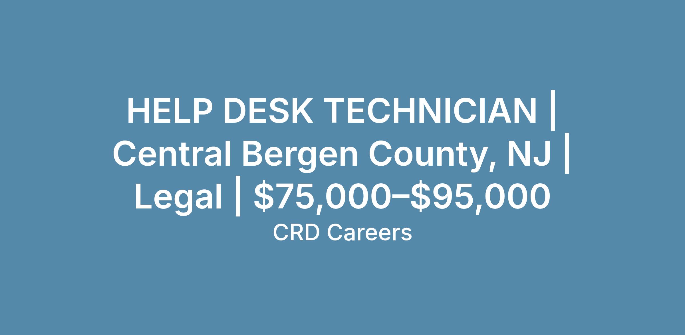 CRD Careers is partnering with a top regional law firm to hire a Help Desk Technician in Bergen County, NJ.