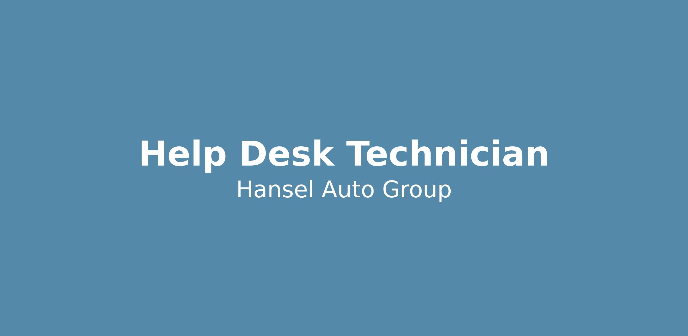 Hansel Auto Group is seeking an Full time entry-level IT Support Technician who is excited to learn, grow, and take pride in doing things the right way. This role is ideal for a detail-oriented individual who enjoys structured tasks, clean setups, and consistent processes.