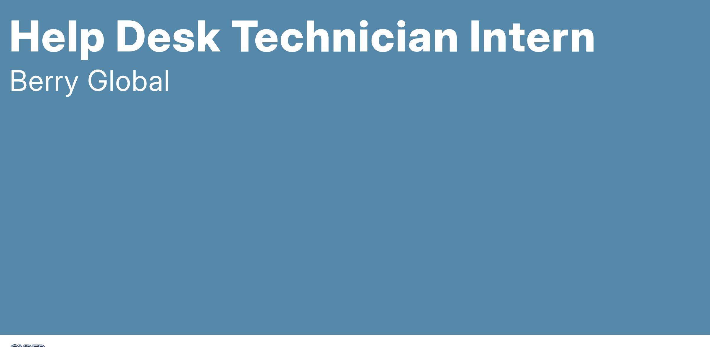 In this role, the intern will provide technical support to Amcor (formerly Berry Global) computer users.