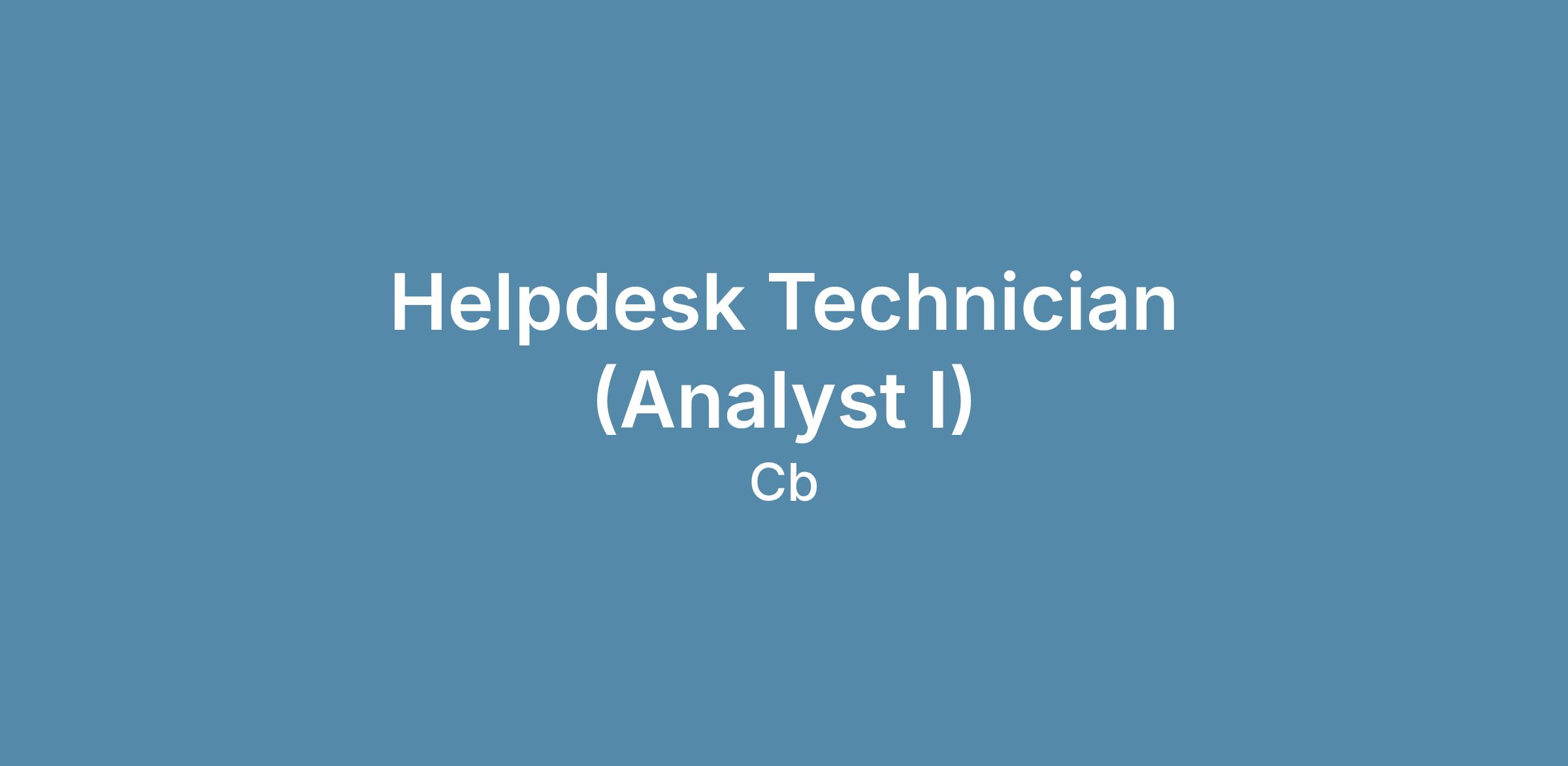 Position: Helpdesk Technician (Analyst I)