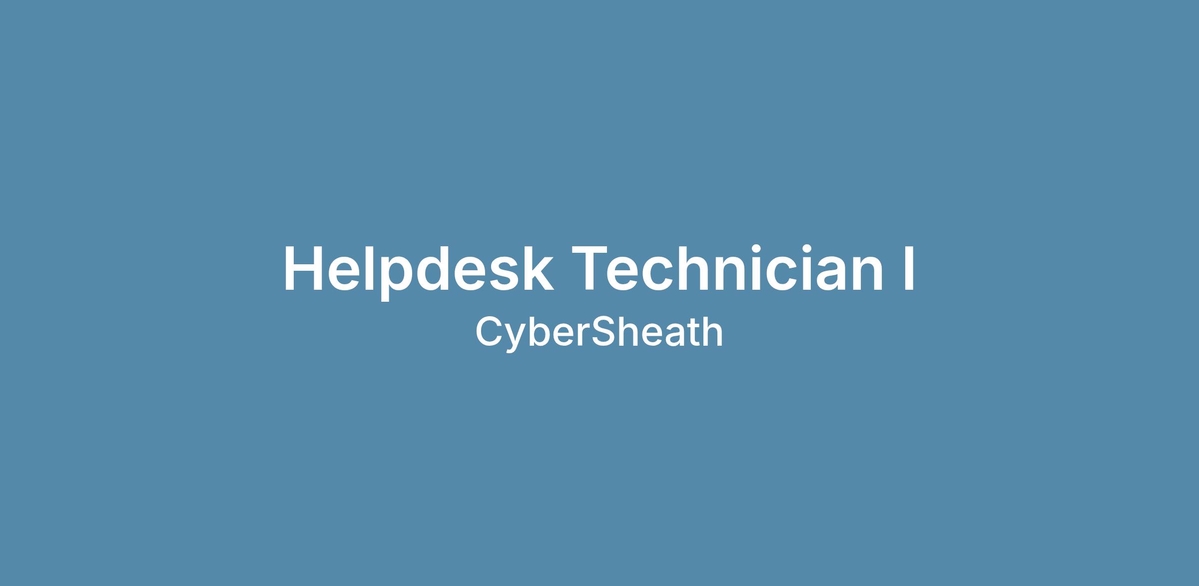 CyberSheath Services International LLC is a rapidly growing Security and IT Managed Services Provider primarily focused on providing Cybersecurity services to the Defense Industrial Base (DIB). We are excited to be expanding our staff due to our growth and are looking to add an additional Helpdesk Technician I to our team!