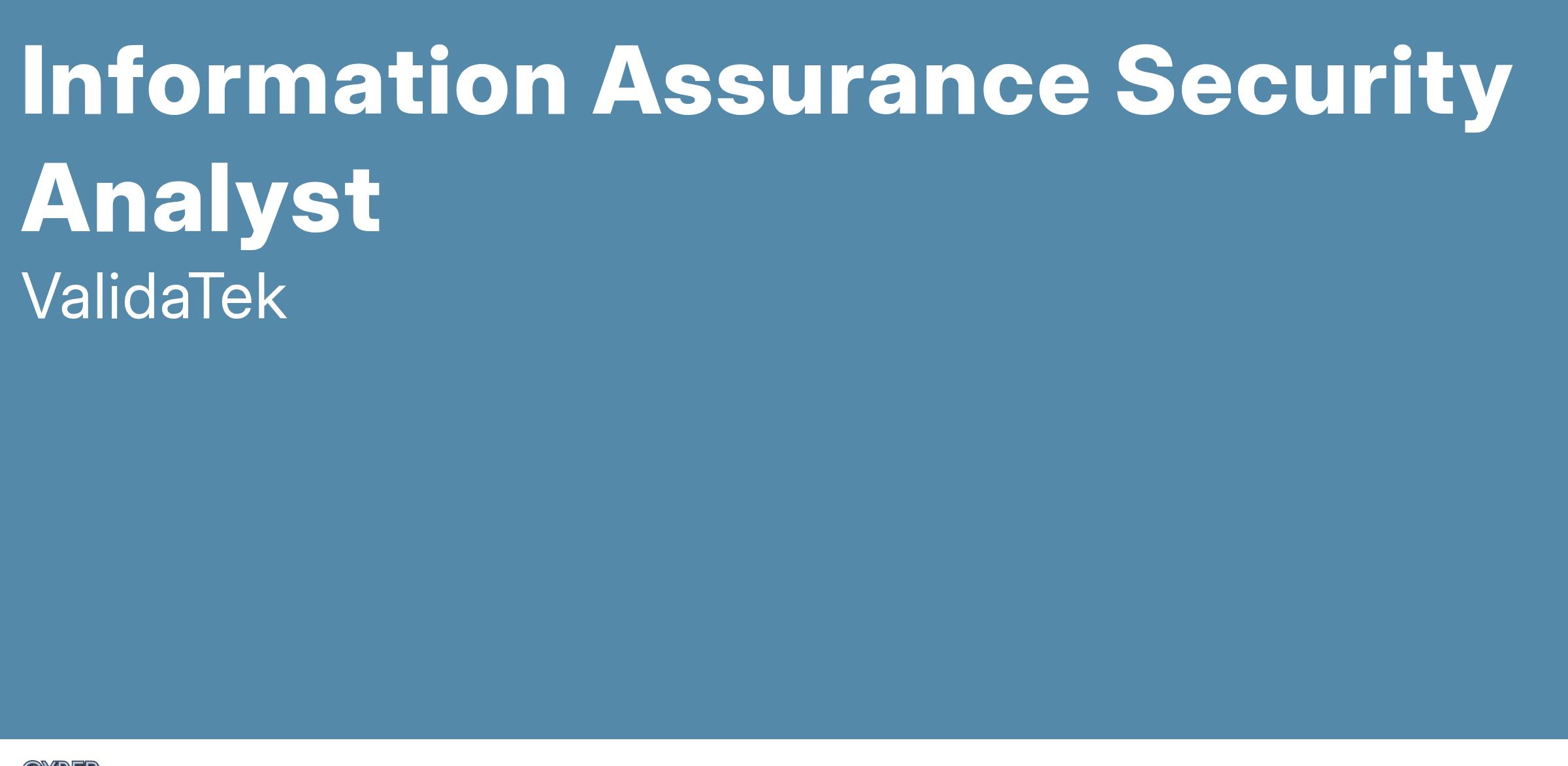 ValidaTek is seeking a highly motivated Information Assurance and Security Analyst with strong collaboration and communication skills to support our Cybersecurity Systems Support (CSS) contract with the Defense Information Systems Agency (DISA). This position plays a critical role in supporting all facets of information assurance, system security, and compliance across the CSS contract. The role is 100% on-site at our Pensacola, FL location.