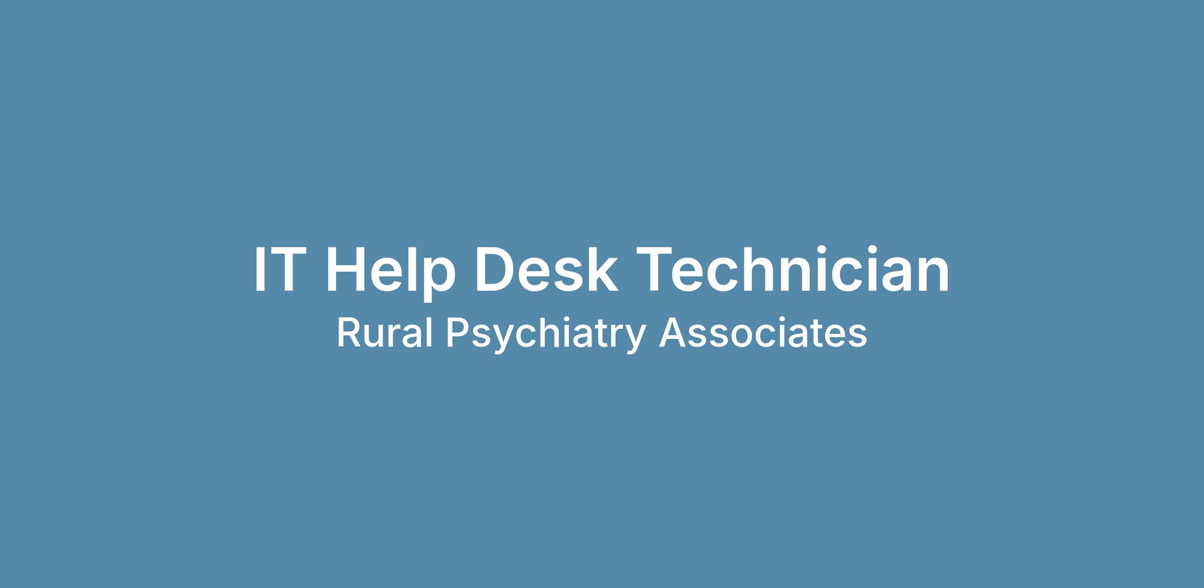 Rural Psychiatry Associates is seeking an experienced IT Help Desk Technician to join our growing team! If you are a technology-focused professional who enjoys problem-solving, supporting users, and ensuring reliable systems in a fast-paced healthcare environment, this is an opportunity to make a meaningful impact.