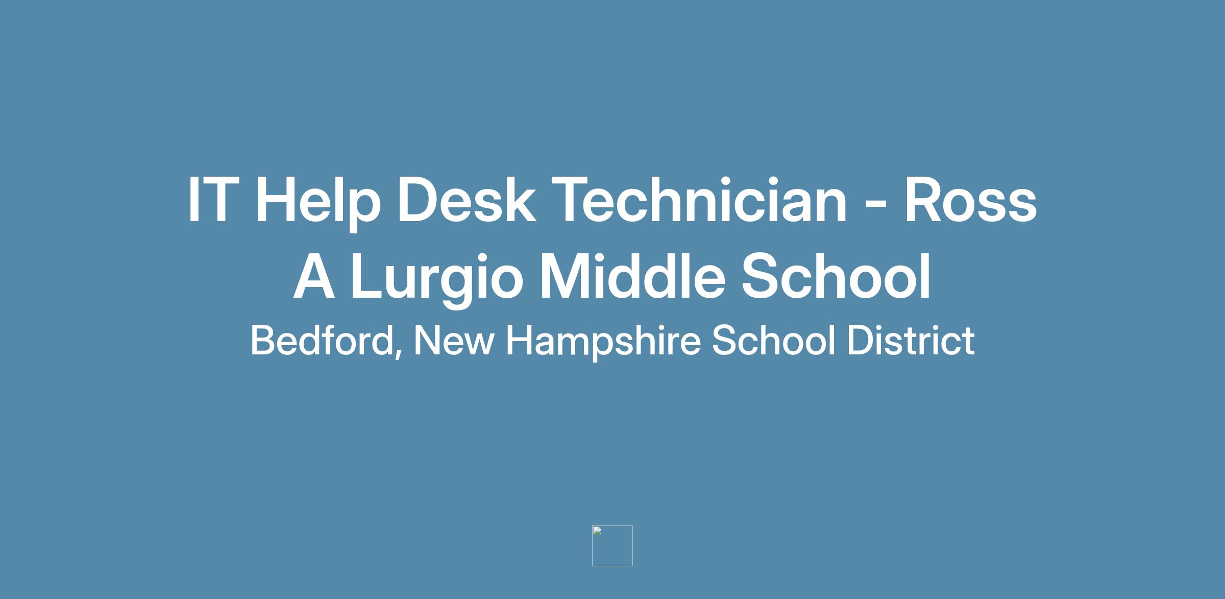 Description: IT Help Desk Technician needed, full-time position, 6.75 hours a day at Ross A. Lurgio Middle School beginning immediately. This is a school year only position.