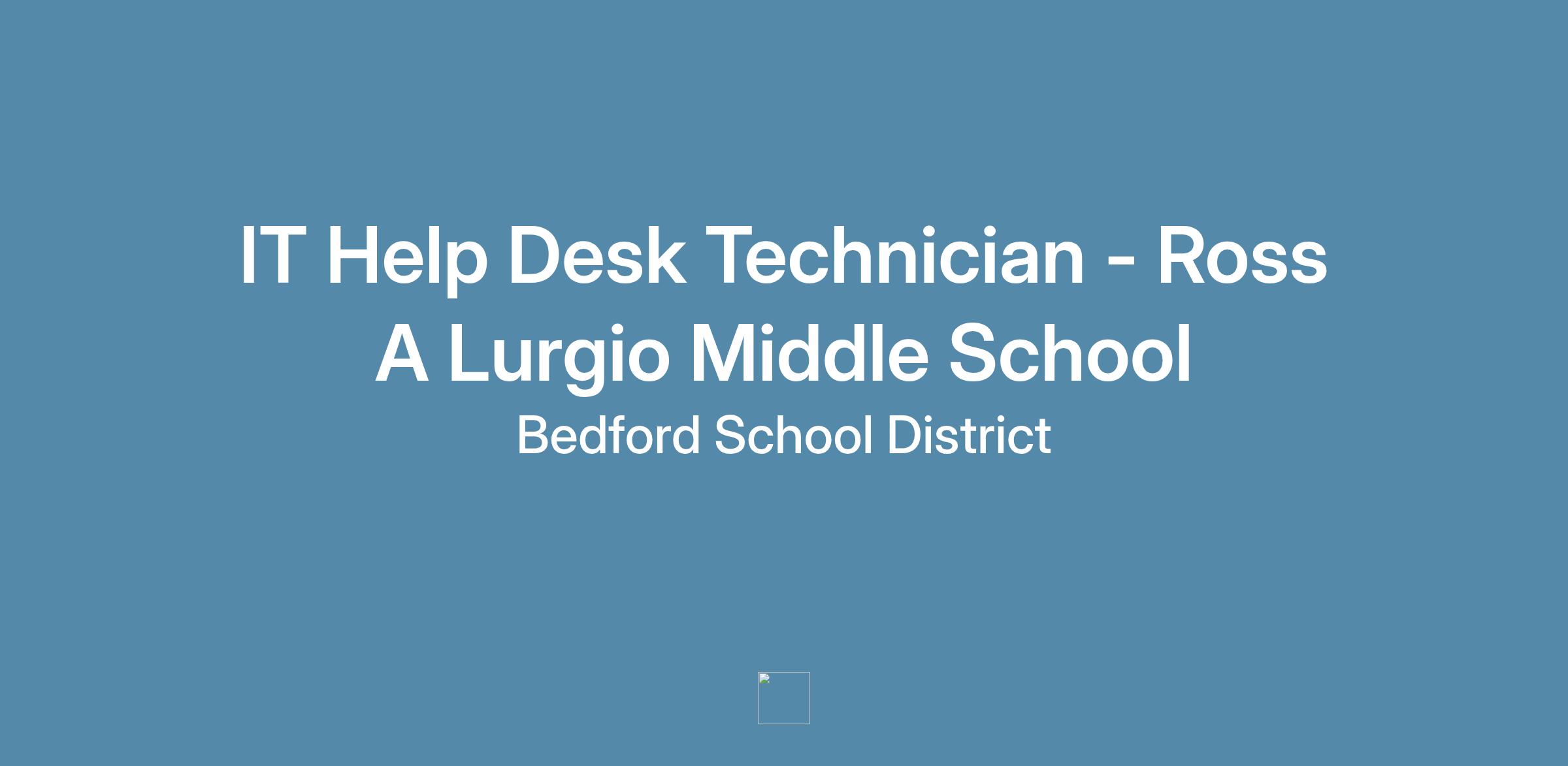 Description: IT Help Desk Technician needed, full-time position, 6.75 hours a day at Ross A. Lurgio Middle School beginning immediately. This is a school year only position.