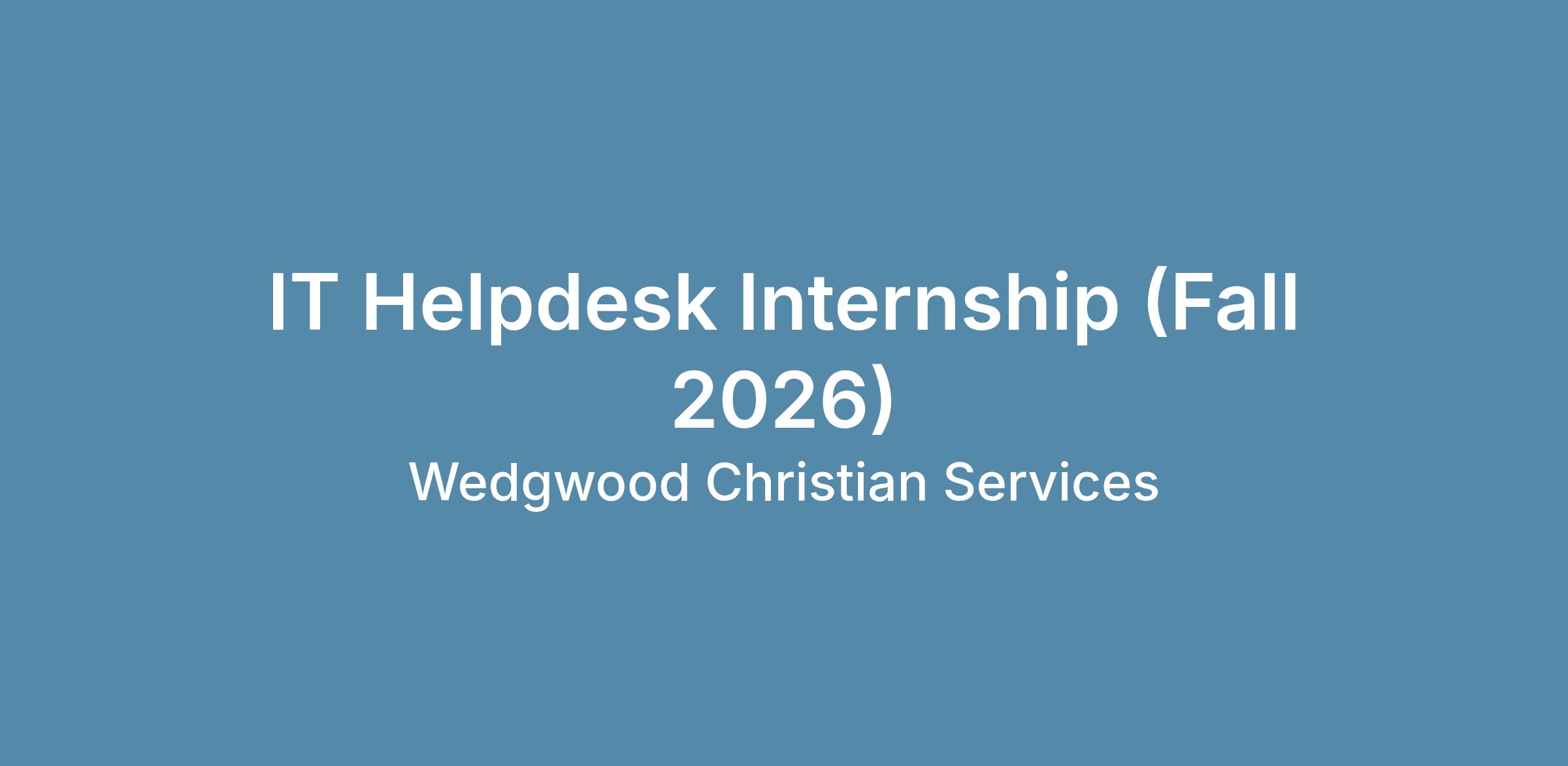 he IT Internship provides a wide range of both hands on and technical opportunities to grow knowledge and experience. This intern works with our Helpdesk Technician to learn user behavior, basic triage, and troubleshooting skills. Additionally, this position works closely with Wedgwood�s IS Systems Specialist to understand basic configurations and good cyber security practice.