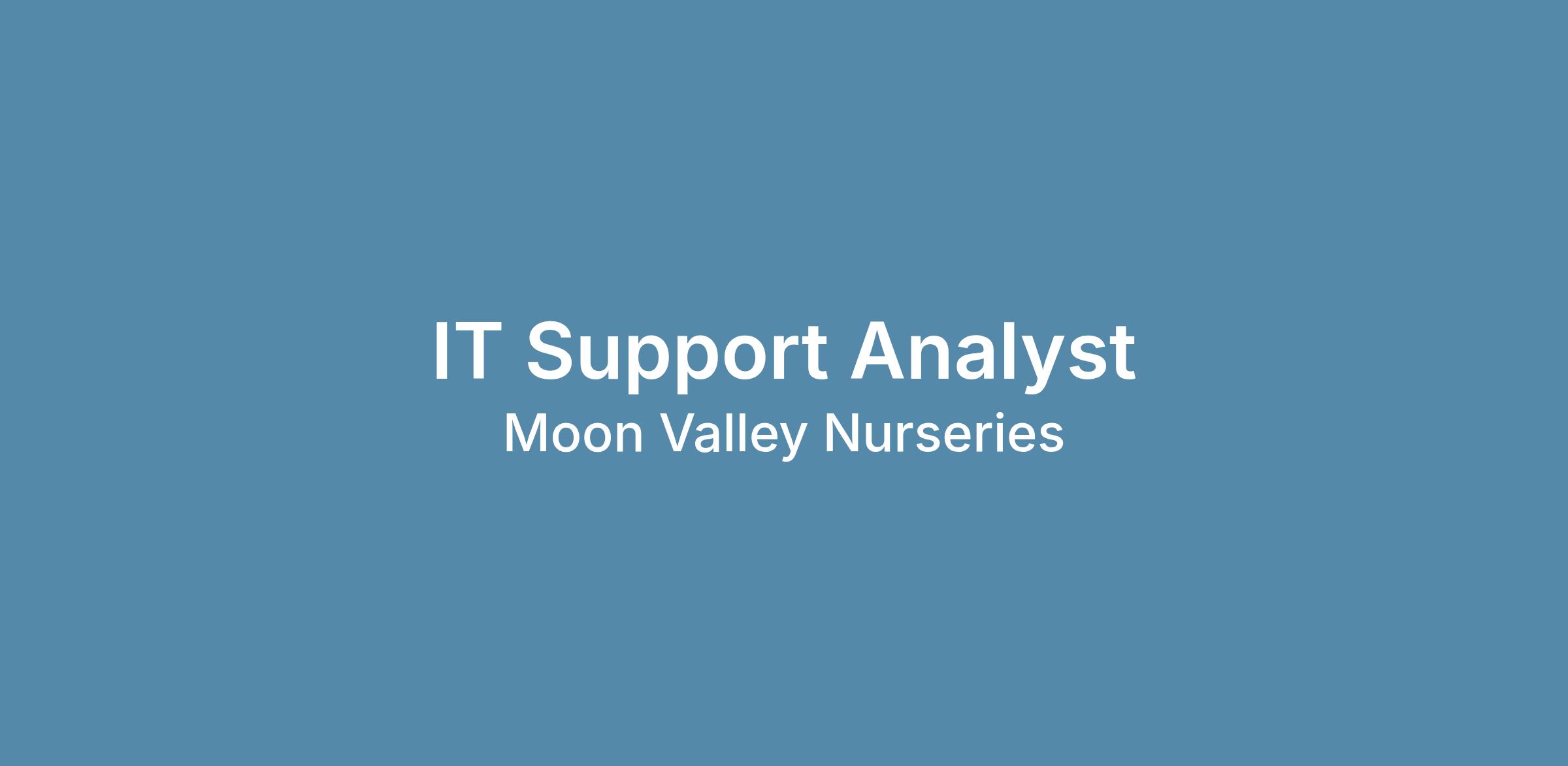 The IT Support Analyst is responsible for administering and performing Moon Valley Nurseries’ IT support functions. This includes the configuration and installation of user devices as well as working with various software, hardware, and peripherals including, but not limited to desktop computers, laptops, tablets, smartphones, voice over IP devices, printers, firewalls, network hardware, etc. The IT Support Analyst resolves issues for end users and troubleshoots hardware and software issues at our retail locations as well as the corporate office