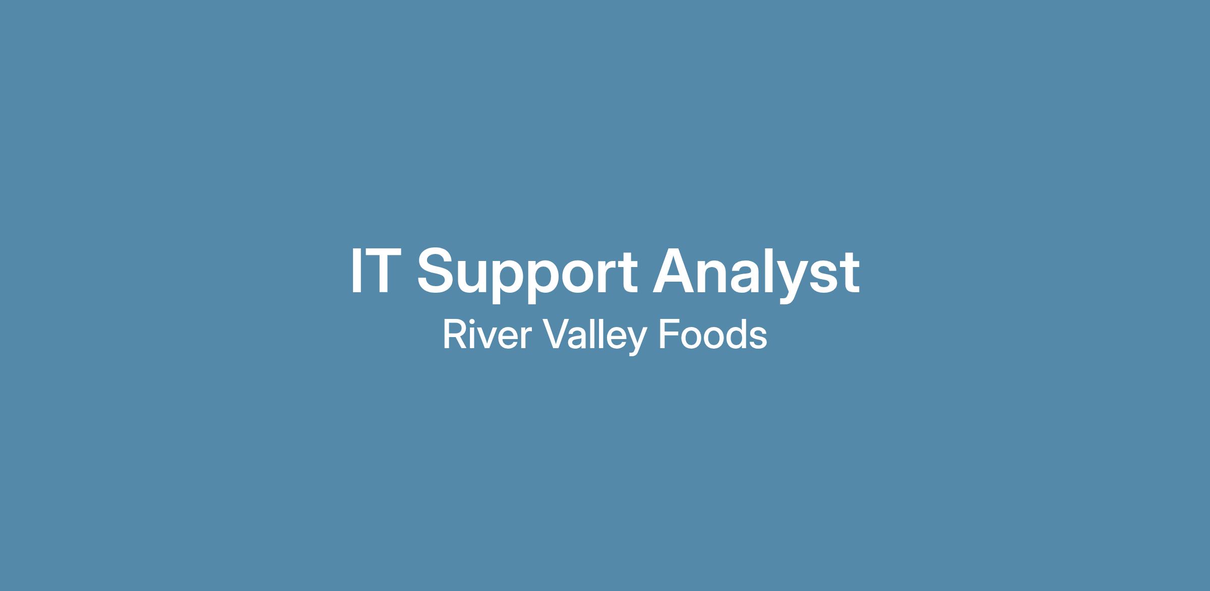River Valley Holdings is expanding, and we’re looking for an adaptable, service-focused IT Support Analyst to support end-users across multiple facilities in Syracuse.