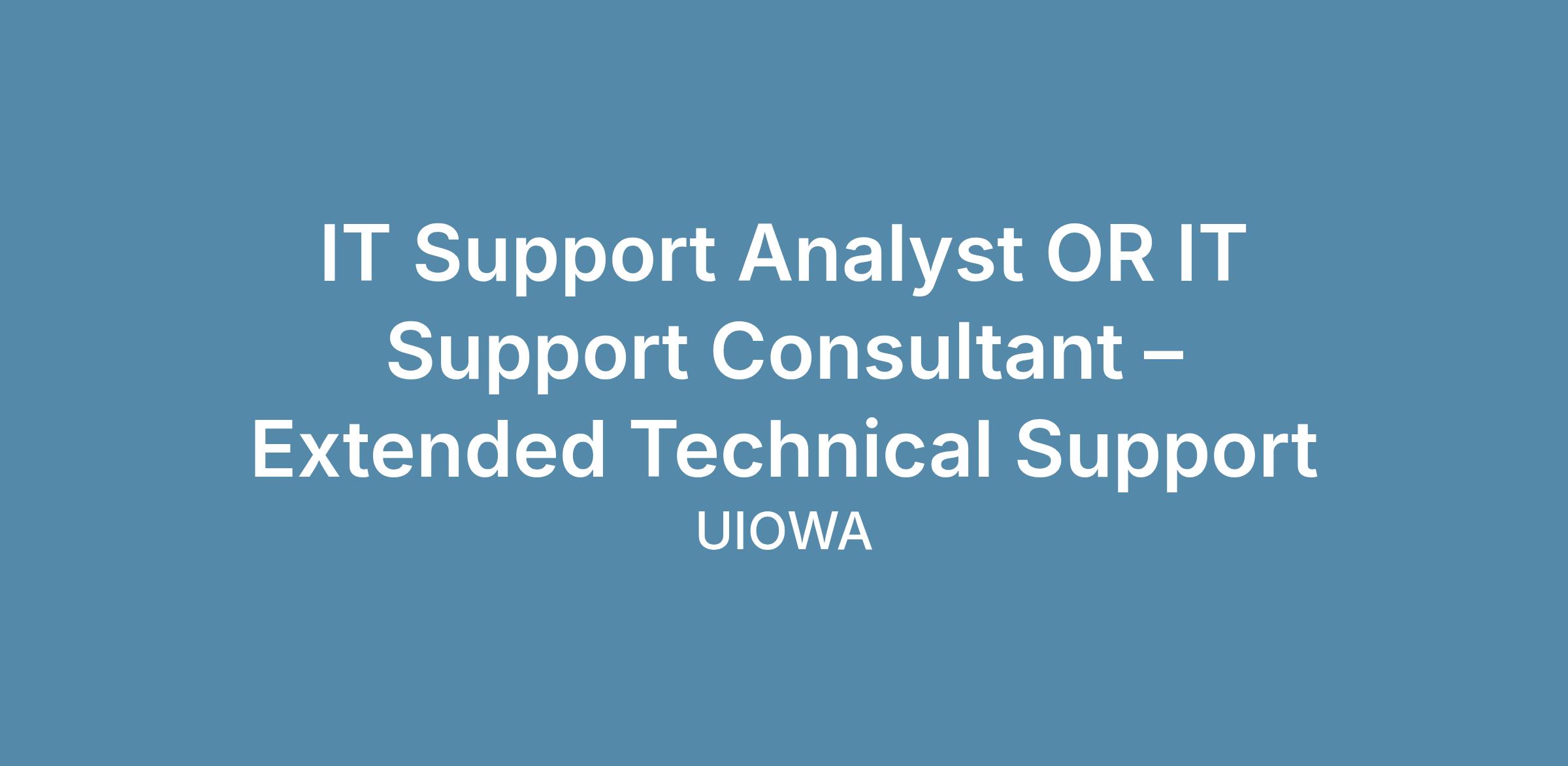 Extended Technical Support, part of IT Services at the University of Iowa, is home to both IT Support Analyst and IT Support Consultants who provide direct support, consultation, guidance, and training to users and identify technical solutions. These roles are responsible for the basic design, installation, setup, and maintenance of security patches, operational integrity, and support of stand-alone and networked computer systems in both Windows PC and Macintosh environments.
