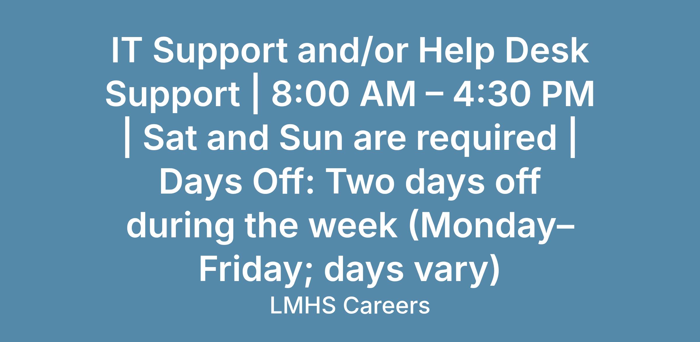 Provide hands on technical support for all supported applications & hardware technologies. Enter customer issues into tracking system. Resolve customer issues and close ticket or escalate to appropriate individual or group. Address moderately complex to complex issues. Configure and install new hardware and applications. Responsible for desktop patching, implementing whitelisted applications, account management, USB key approvals, & testing of new software. Previous healthcare experience preferred. This position could be hands on support, phone support or combination of both. This is dependent on chosen applicant’s abilities.