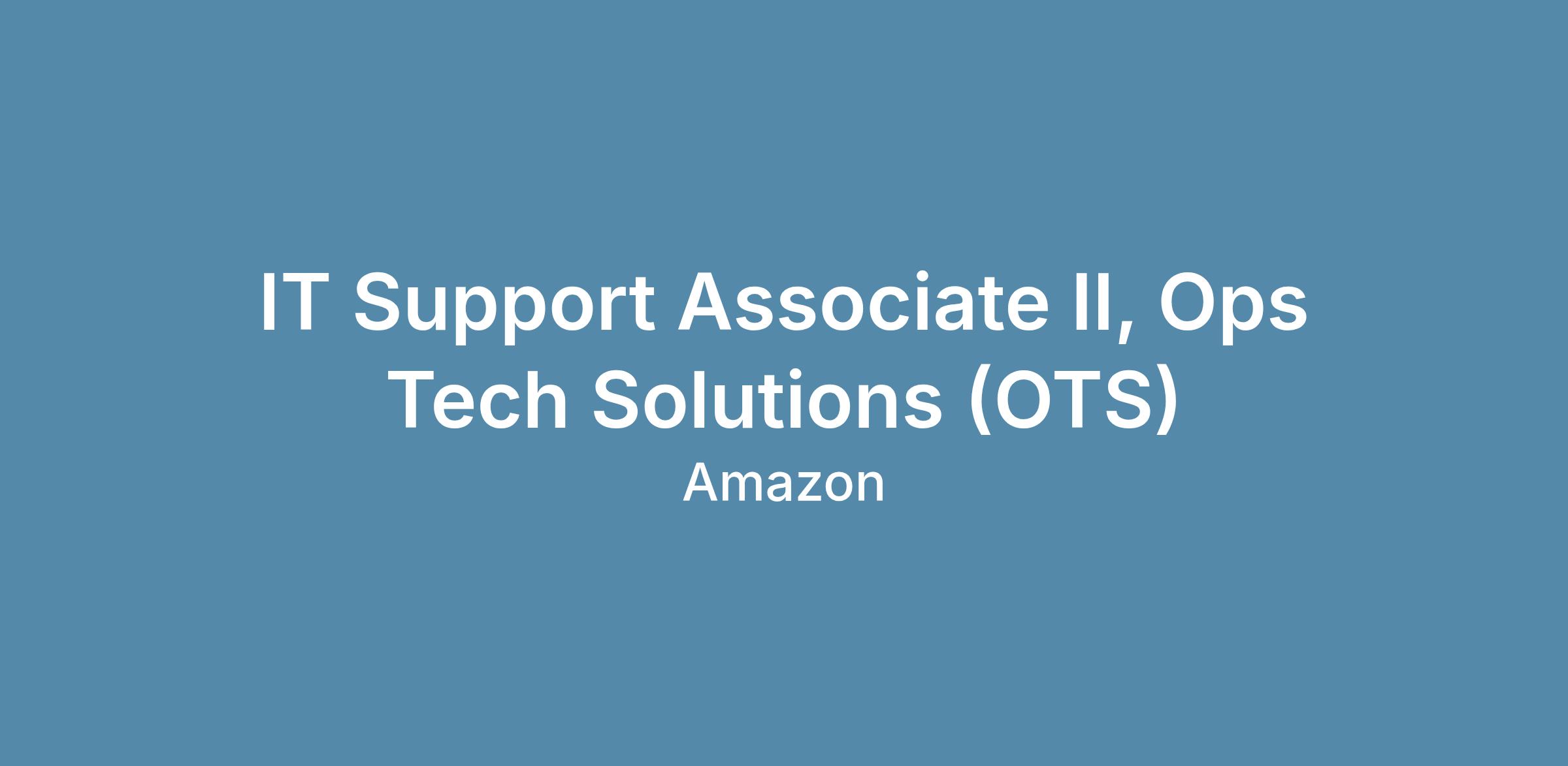 As an IT Support Associate II, you will use your skills to support the operations team in resolving technical problems within Amazon operations facilities in a defined geographical area that span across a multitude of technical disciplines. We are committed to improvement; you will be encouraged to participate in career development opportunities as presented to progress your career at Amazon.