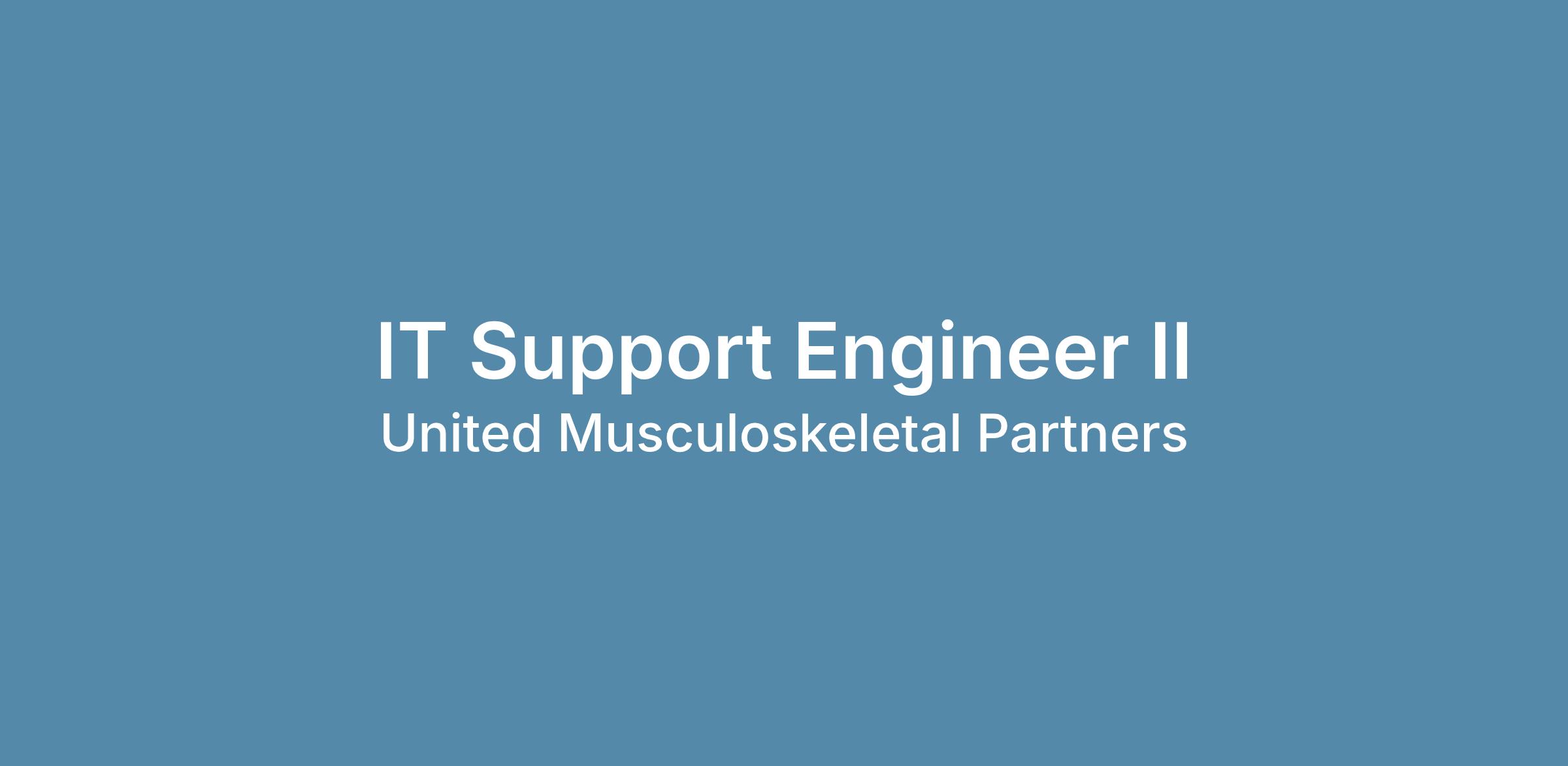 As an IT Support Engineer L2 at United Musculoskeletal Partners (UMP), you’ll be a part of a collaborative team that is hyper-focused on providing a superior computing environment to our over 60 Care Centers and nearly 2,500 clinical and administrative staff.? While your first job will be to support our end users as part of a highly collaborative swarming support model you’ll also act as the escalation point to the L1 & L2 engineers on the support team. You’ll also have the opportunity to participate in a wide variety of projects such as building out new Care Centers, participating in M&A activity and improving our desktop automation services.