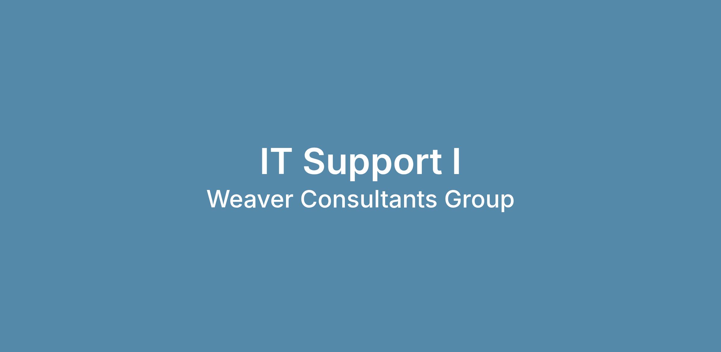Weaver Consultants Group seeks to hire an IT Support I based out of our Denver, CO office. As a member of our IT Team, you will be assisting in the steady improvement of the company’s core infrastructure, systems, and people to maximize efficiency in the workplace. The organization works off a decentralized model supporting employees all around the country under multiple subsidiaries, meaning that the environment and landscape is ever-changing resulting in an environment with massive opportunity for personal development.