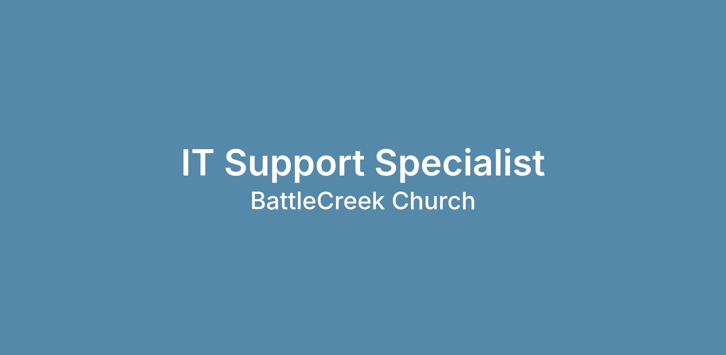The IT Generalist provides frontline technical support for BattleCreek Church, troubleshooting hardware, software, and network-related issues, assisting with service requests, and ensuring a consistent and efficient end-user technology experience. This role supports day-to-day IT operations, including device setup, issue resolution, and managing Help Desk tickets.