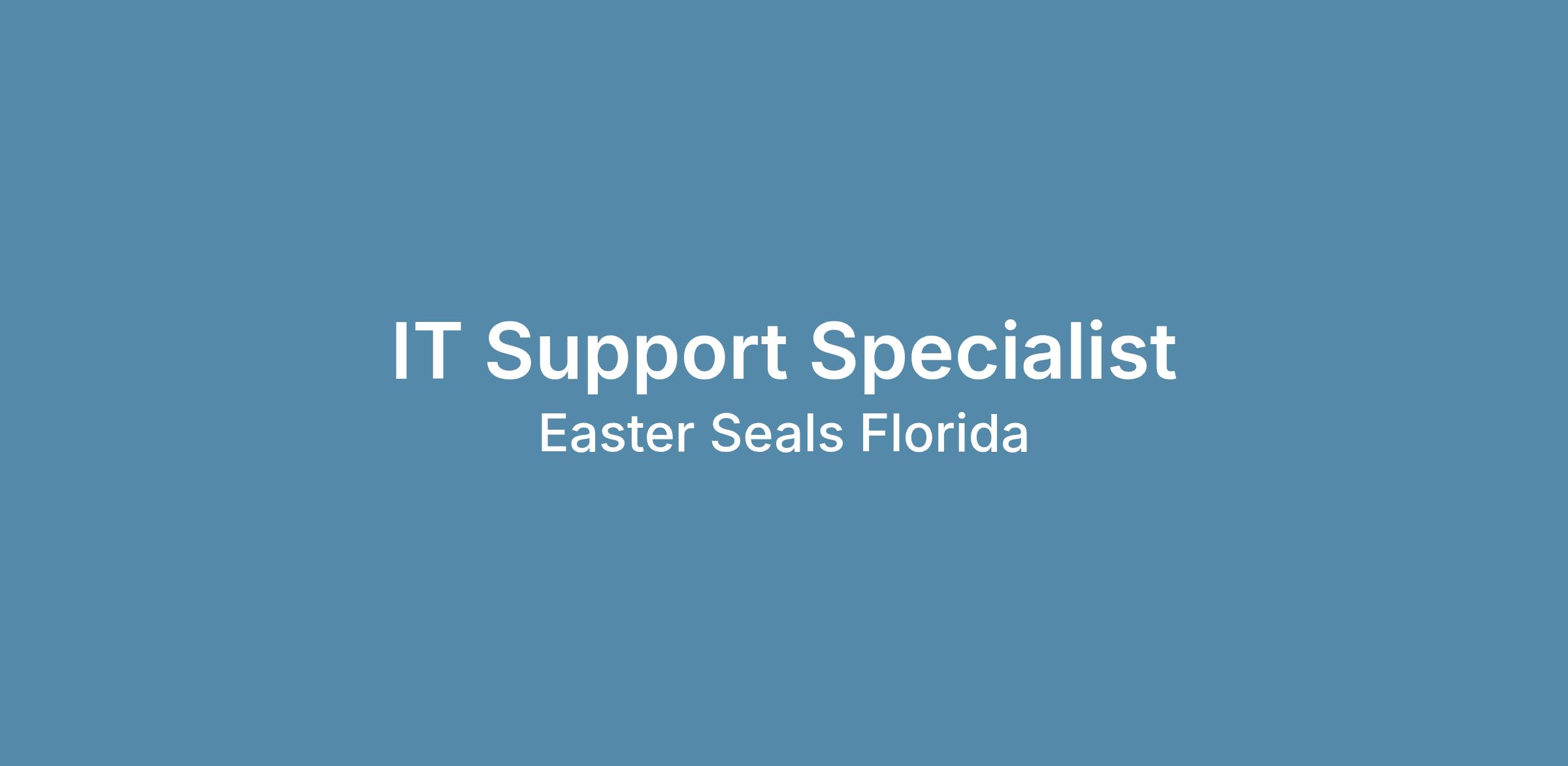Easterseals Florida is looking for an organized, customer-service focused, and detail-oriented IT Support Specialist to provide onsite introductory-level technical support across our Volusia County and Flagler County locations. If you’re an energetic, inquisitive learner eager to grow your IT career, this is a great opportunity to gain hands-on experience across multiple sites.