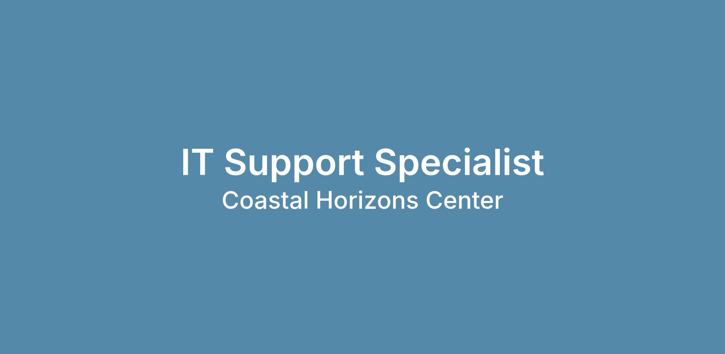 Coastal Horizons Center, Inc., a recognized leader in substance abuse, mental health, rape crisis, prevention and criminal justice services in southeastern North Carolina, has an opportunity for an Information Technology Support Specialist to become part of our expanding organization.
