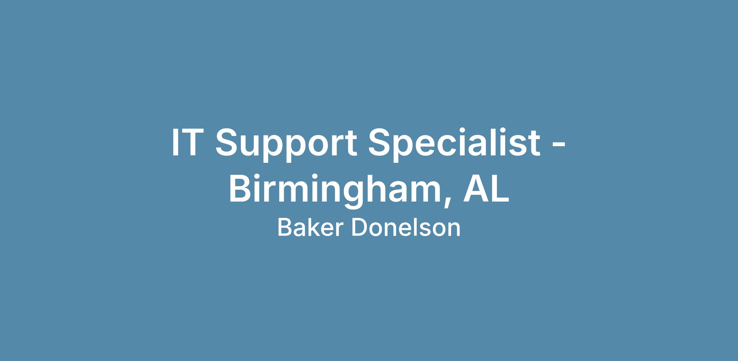 Baker, Donelson, Bearman, Caldwell & Berkowitz, PC has an immediate opening in its Birmingham, AL office for an IT Support Specialist (tiers 2/3). Candidates must be customer-service oriented and proactive in anticipating and resolving issues while maximizing efficient use of computing resources.