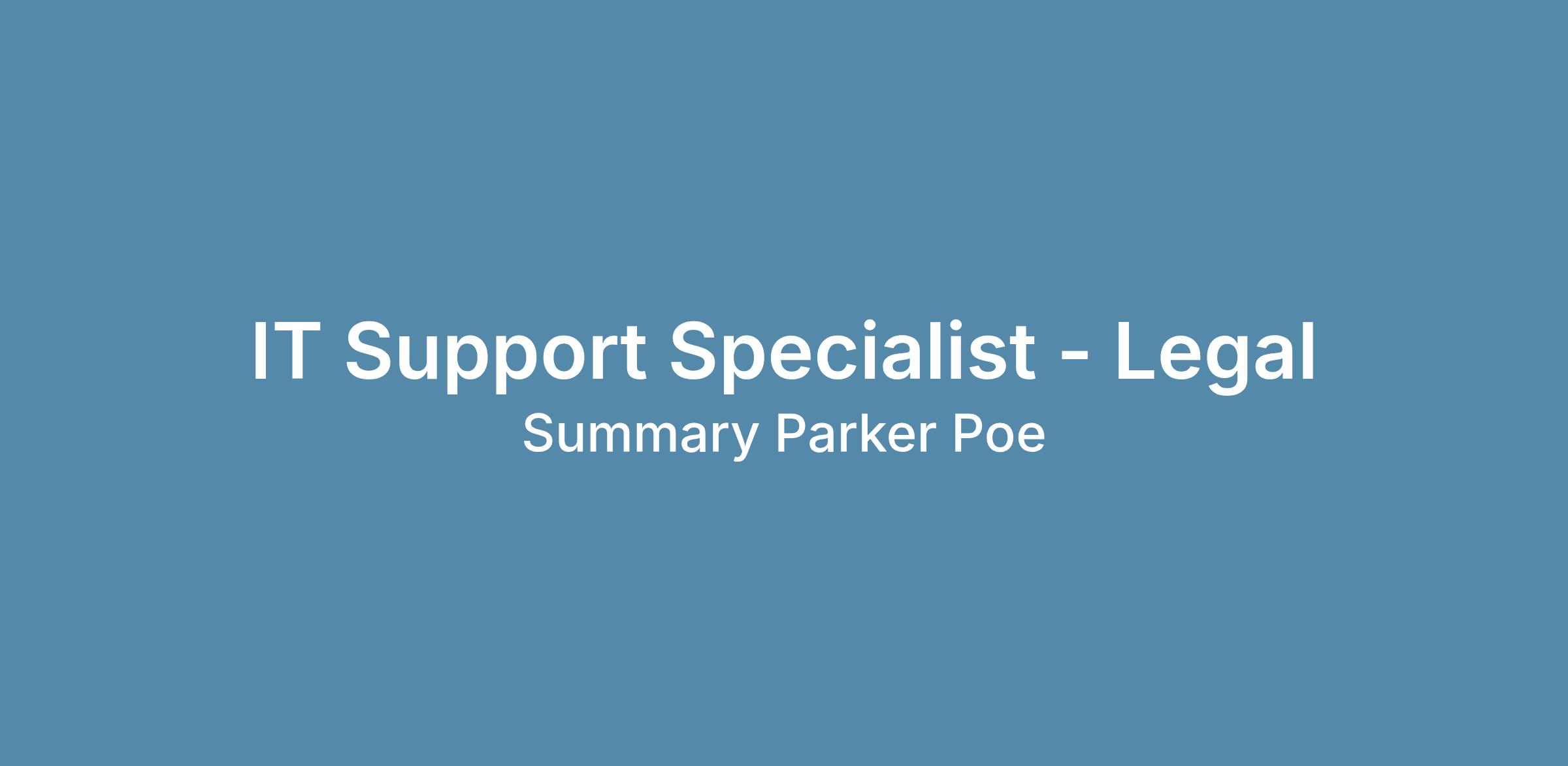 Parker Poe is seeking an experienced IT Support Specialist to join our team as the primary onsite technical resource for our Charleston office while also supporting end users across the firm through our centralized IT Help Desk. This role is ideal for a self-driven, service-oriented IT professional who thrives in a hands-on environment, enjoys solving technical challenges, and takes pride in delivering exceptional support to attorneys and staff. This position will primarily be in-office with occasional travel and will participate in a rotating remote on-call schedule including evenings and weekends.