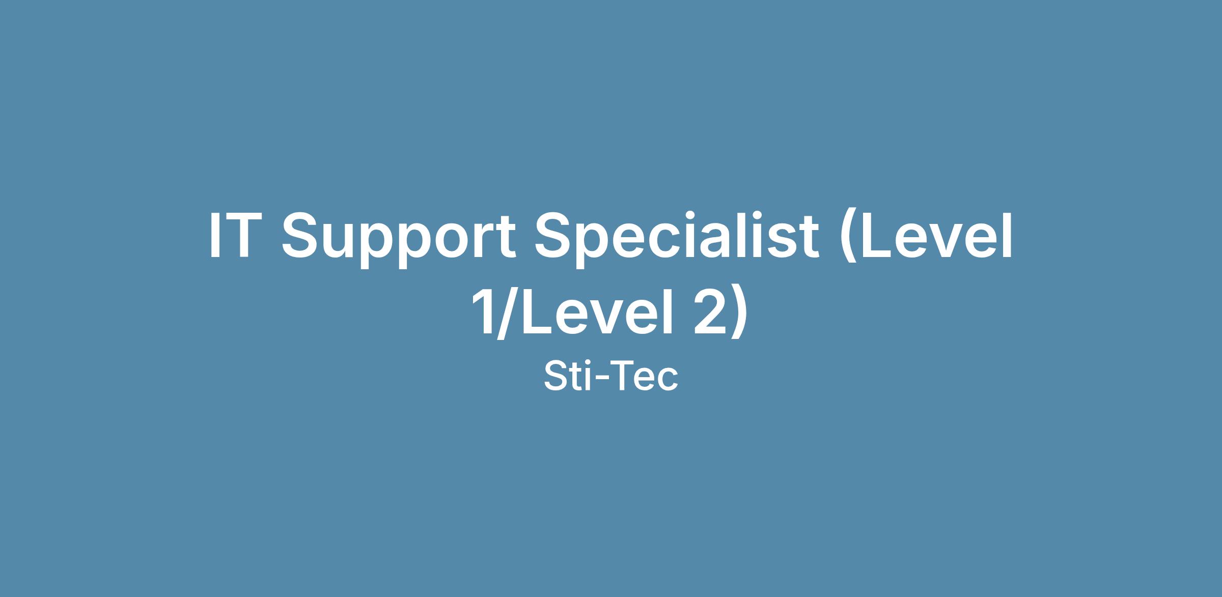 IT Support Specialist (Level 1/Level 2)