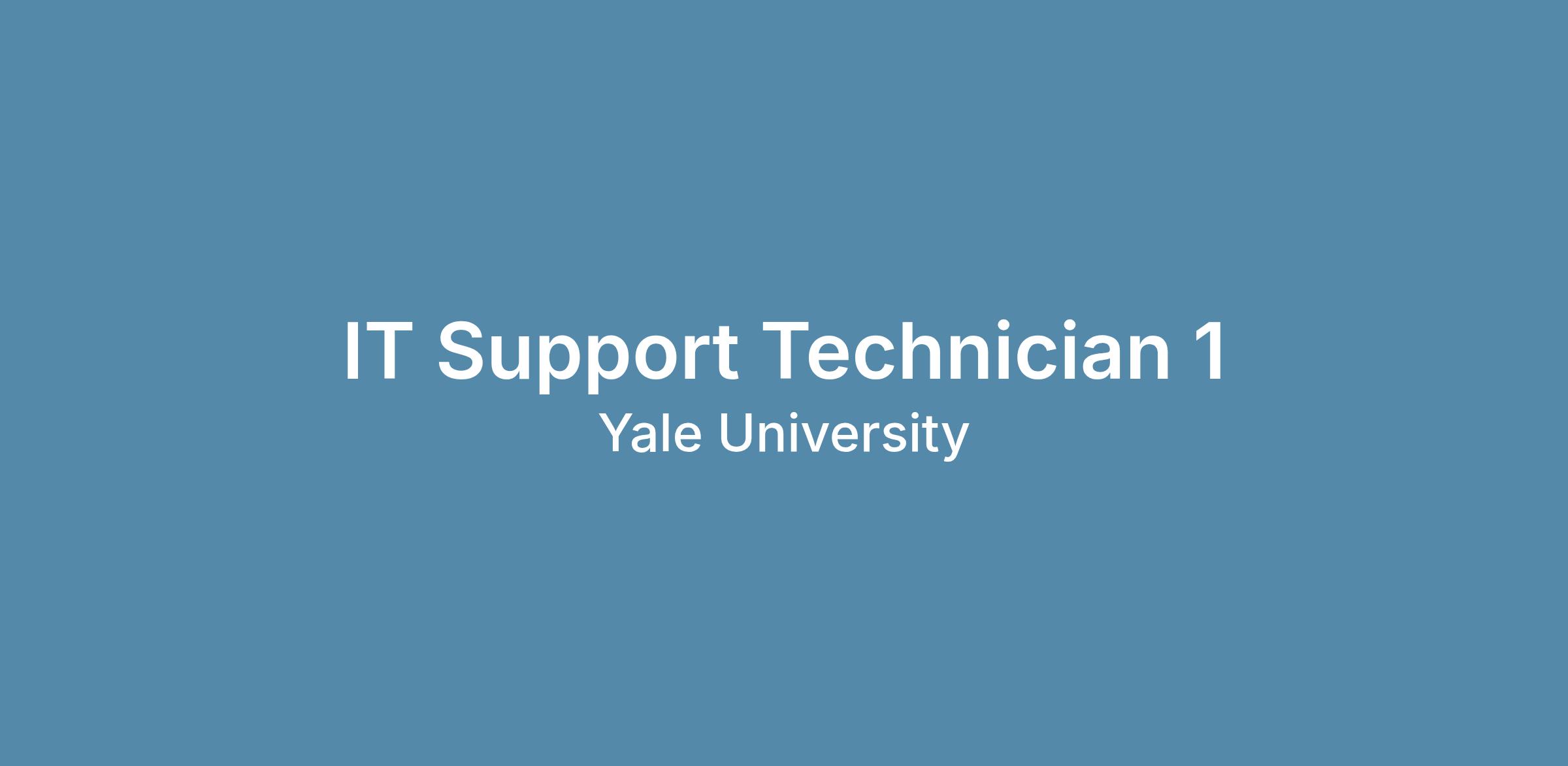 1. Provides telephone based and email computer support at the ITS Help Desk. Provides assistance to end-users related to computer and or networking problems, and services and procedures within Yale University. 2. Troubleshoots computing related problems. Identifies and analyzes all software, hardware, and network-related issues, recommend solutions and assist user with resolution. Escalates problems of a complex nature as needed. 3. Provides functional support for University financial and administrative applications, including both a detailed understanding of how the applications function and of how to use them consistent with Yale’s financial and administrative policies and procedures. Exercises judgment to escalate functional issues of a complex nature as needed. 4. Responds to emergency calls and routine calls. Analyzes problems to determine if a technician site visit is required. Creates work order and follow-ups on technician visit to ensure resolution. Documents all reported problems. 5. Evaluates user applications and operating system to allow for maintenance. Provides consultation on systems related problems and recommendations regarding systems and equipment to end-users; provides support, information and consulting services to faculty, staff and students. 6. Assists users in maintaining their desktop computing environment. Recommends supported software applications operating systems to end-users. Assists in the maintenance of a knowledge database. Maintains equipment inventories. 7. Applies understanding and knowledge of information systems products and services to assist internal users. Identifies, investigates and researches user questions and problems as well as recognize, research, isolate and resolve information systems problems. 8. Helps identify skill level and recommends training courses for users. Assists in developing documentation and /or related material for training. 9. Acts as liaison between end-user and departments. 10. Provide coverage for ITS Client Accounts including accounts and access creation, modification, maintenance and deletion 11. Completes and documents technical projects such as the testing of hardware and software products. 12. Assures compliance with University required security and information technology policies and procedures. Required Education and Experience Six years of related experience, four of them in the same job family at the next lower level, and a high school level education; or four years related experience and an Associate's degree; or little or no work experience and a Bachelor degree in a related field; or an equivalent combination of experience and education.Job Posting Date