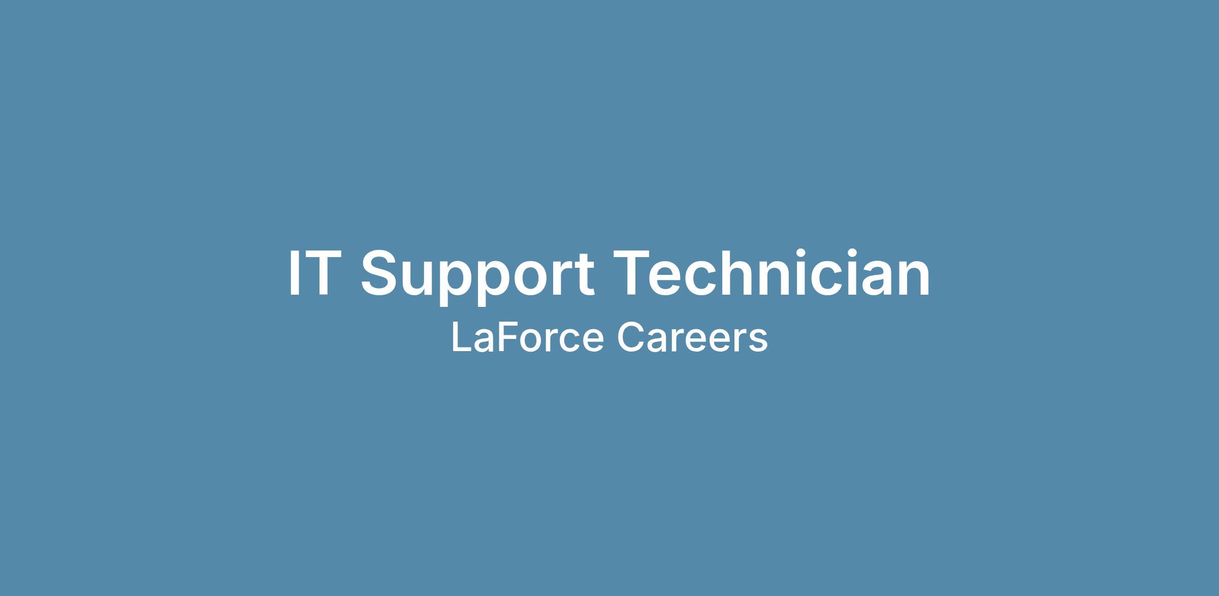 LaForce is looking for an IT Support Technician to serve as the first point of contact for all computer and phone issues Company wide. The IT Support Technician will provide user support for PC software and hardware; basic software and printer issues; and internal/cell phone systems, and will assist in PC network, hardware and software maintenance and upgrades.