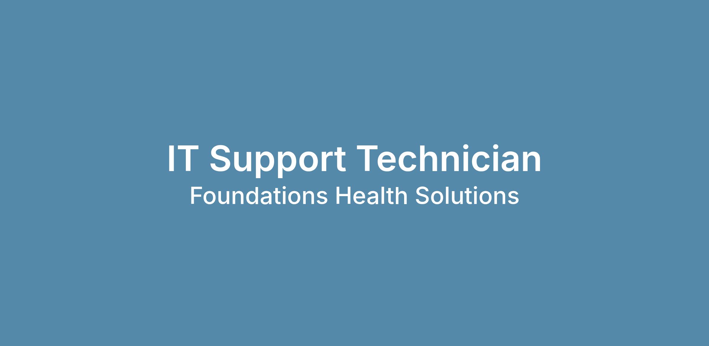Foundations Health Solutions is seeking an IT Support Technician to join their team. This position is responsible for resolving incidents, implementing solutions, and ensuring a well functioning environment for our end users.
