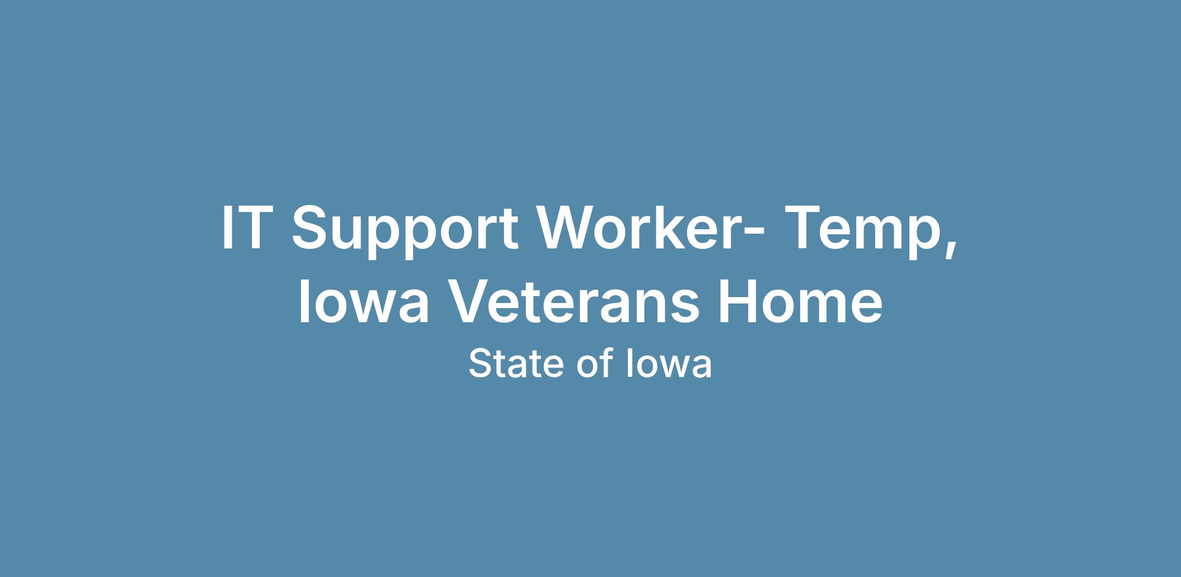 The Iowa Veterans Home is one of the largest employers in central Iowa with over 800 employees who provide specialized long-term nursing and residential care to nearly 400 veterans and their spouses. We honor those who served America by providing comprehensive, complex and compassionate care in a personalized home-like setting. The Iowa Veterans Home has an opportunity working with Information Technology.