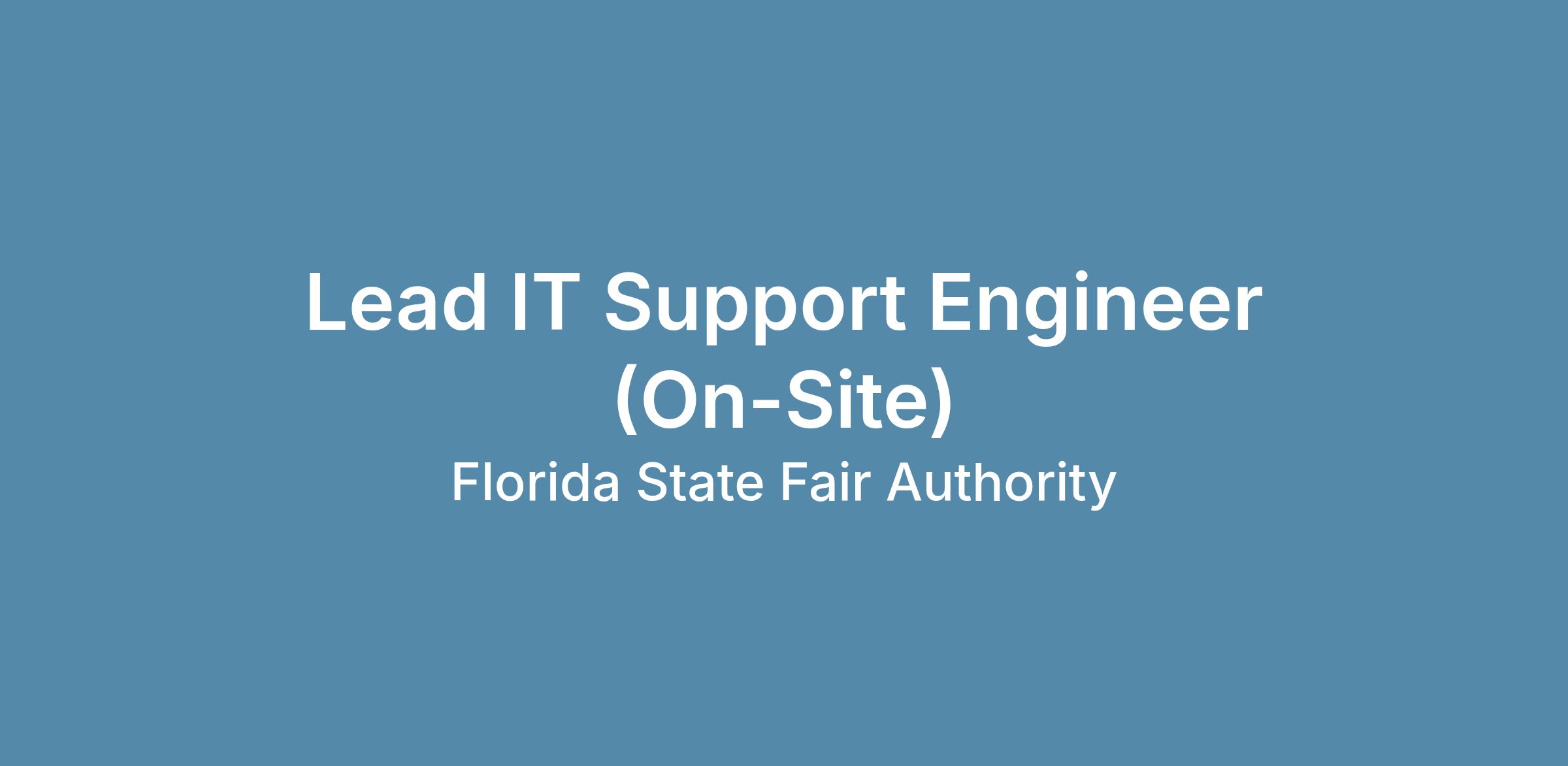 Are you a hands-on IT professional who enjoys solving problems, leading a team, and keeping systems running at their best? The Lead IT Support Engineer is instrumental in supporting the technology that powers the Florida State Fair Authority and the dynamic operations behind the Florida State Fair. This position is on-site and leads day-to-day IT support, maintains critical infrastructure, and helps ensure a seamless technology experience for staff and event operations, especially during one of Florida’s largest annual events.