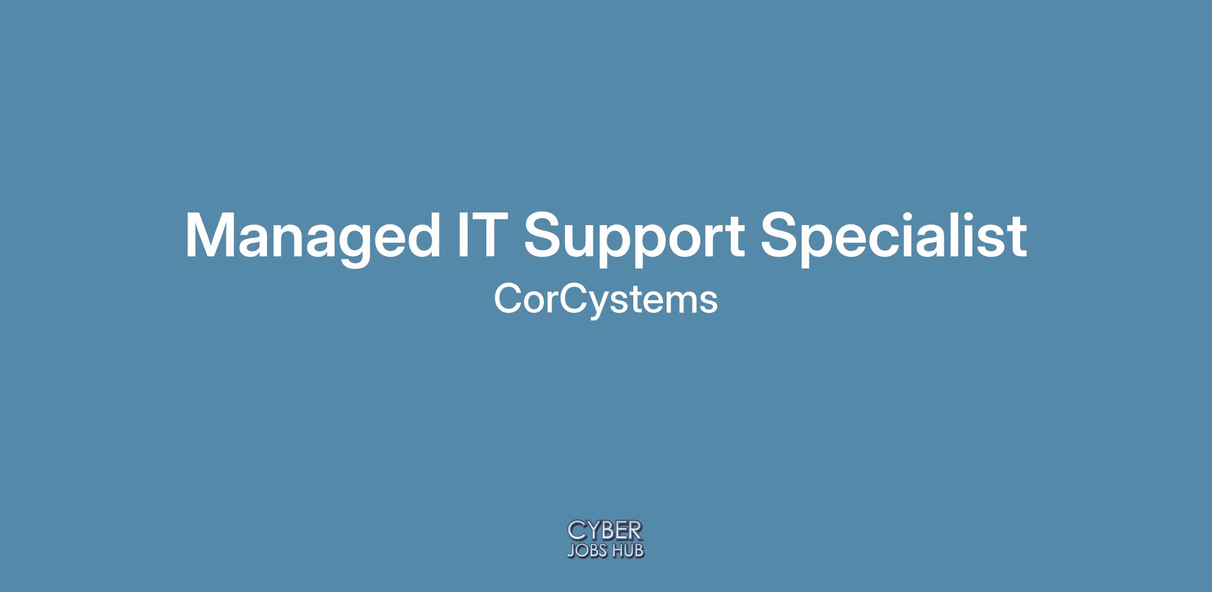 DescriptionCorCystems is a Managed IT Services company located in Ridgefield, CT. We are looking for a new team member in our Service Dept. to provide exceptional technical support to our managed clients both remotely from our Ridgefield, CT office and on-site at clients office as needed. The Support Specialist position, is responsible for providing daily technical assistance to clients in a professional and friendly manner. The ideal candidate will have a proven, successful experience working in a Managed IT Services environment or in a related IT technical support role and enjoys helping others and continual learning and career advancement.