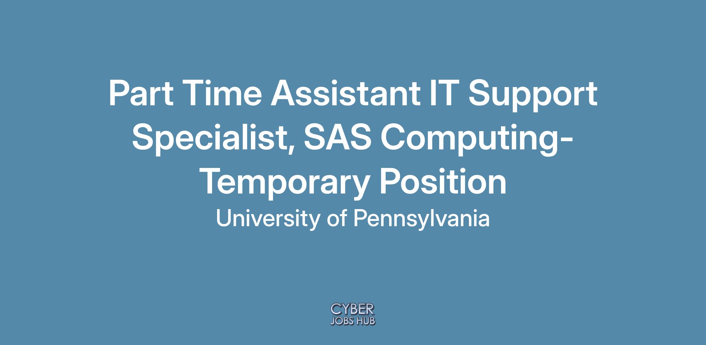 Part Time Assistant IT Support Specialist, SAS Computing- Temporary PositionJob Profile Title