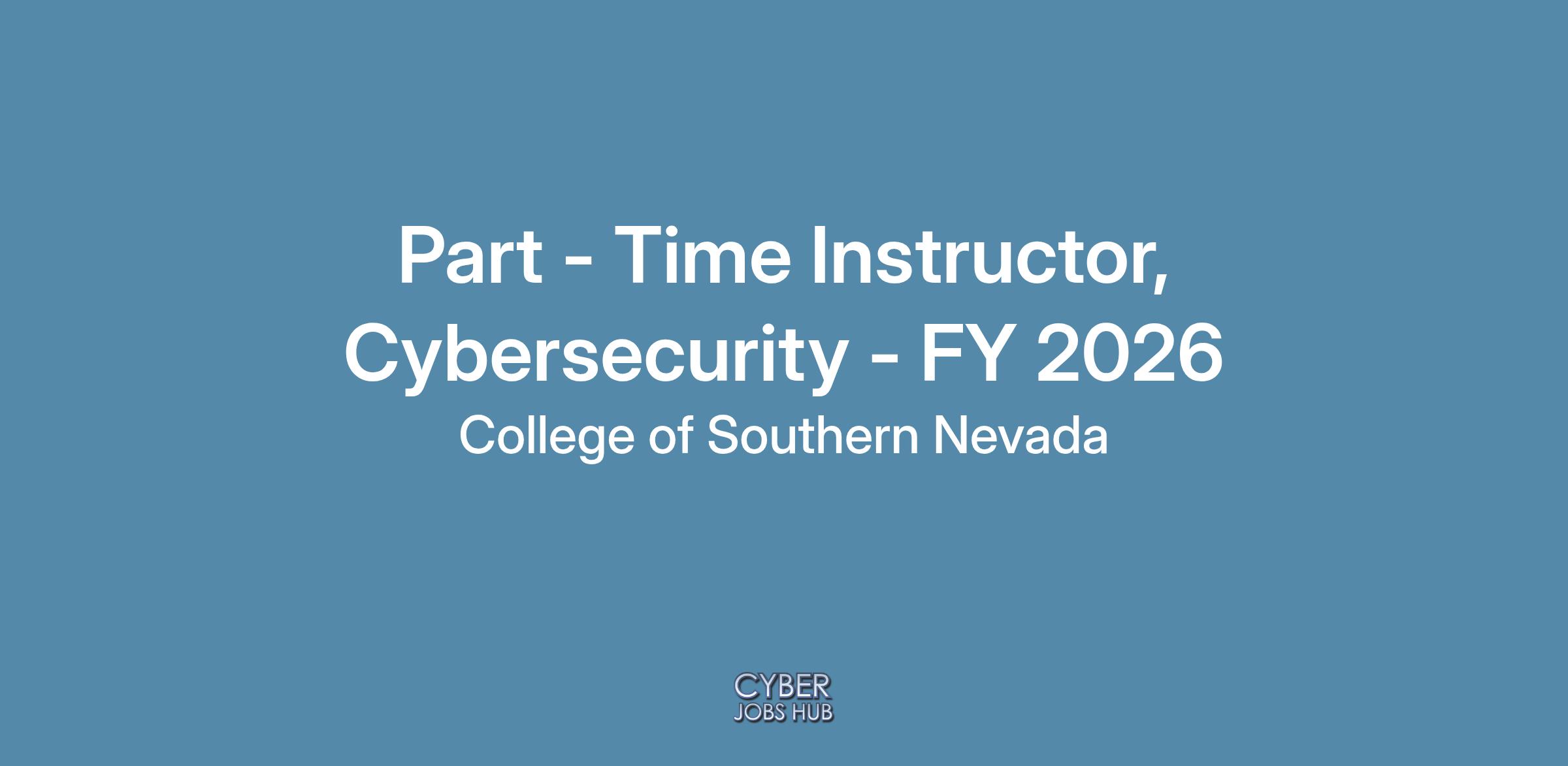 The CSN CIT Cybersecurity program is looking for part-time instructors for instructing in Cybersecurity/network security courses. Teaching assignments may include classroom courses based in any of the three CSN locations: Charleston, North Las Vegas, and Henderson OR remote course based on availability.